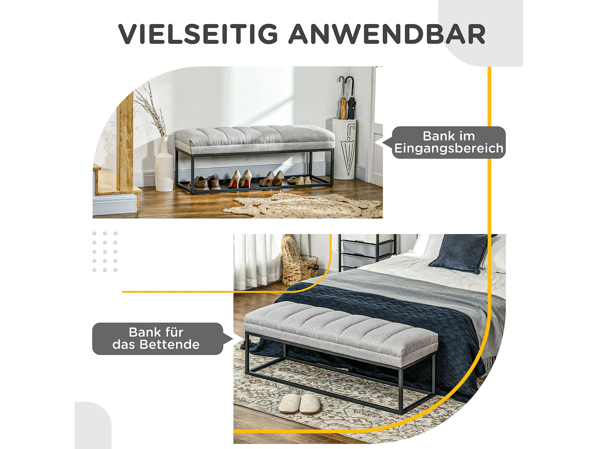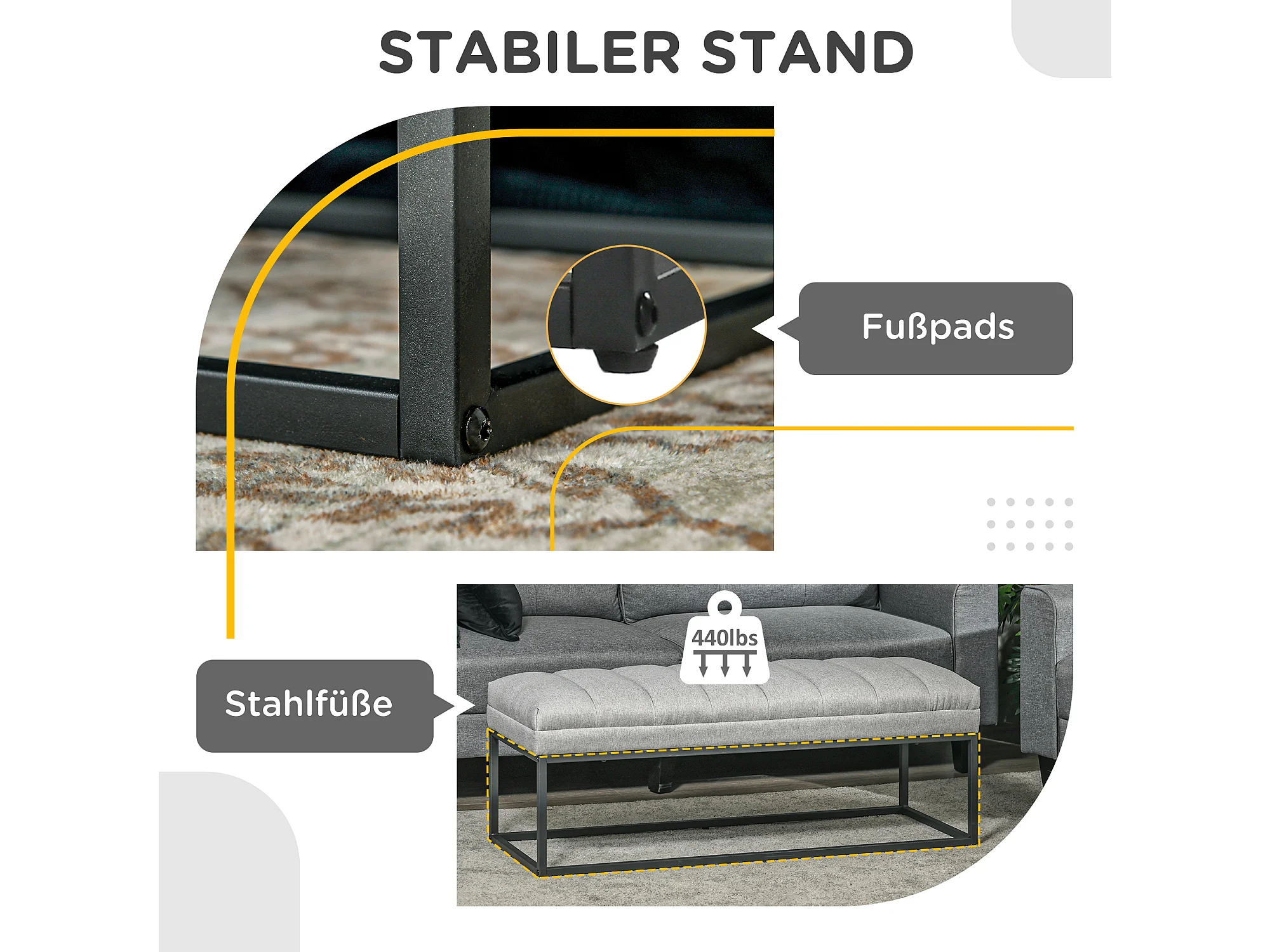 Banc de rangement en lin, avec pieds en acier, capacité 200 kg, gris (120x44x45.5 cm)