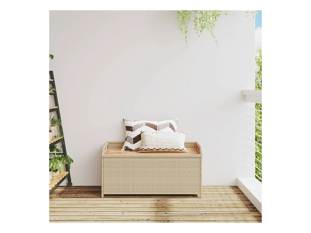 Banc de rangement mélange beige résine tressée et bois d'acacia