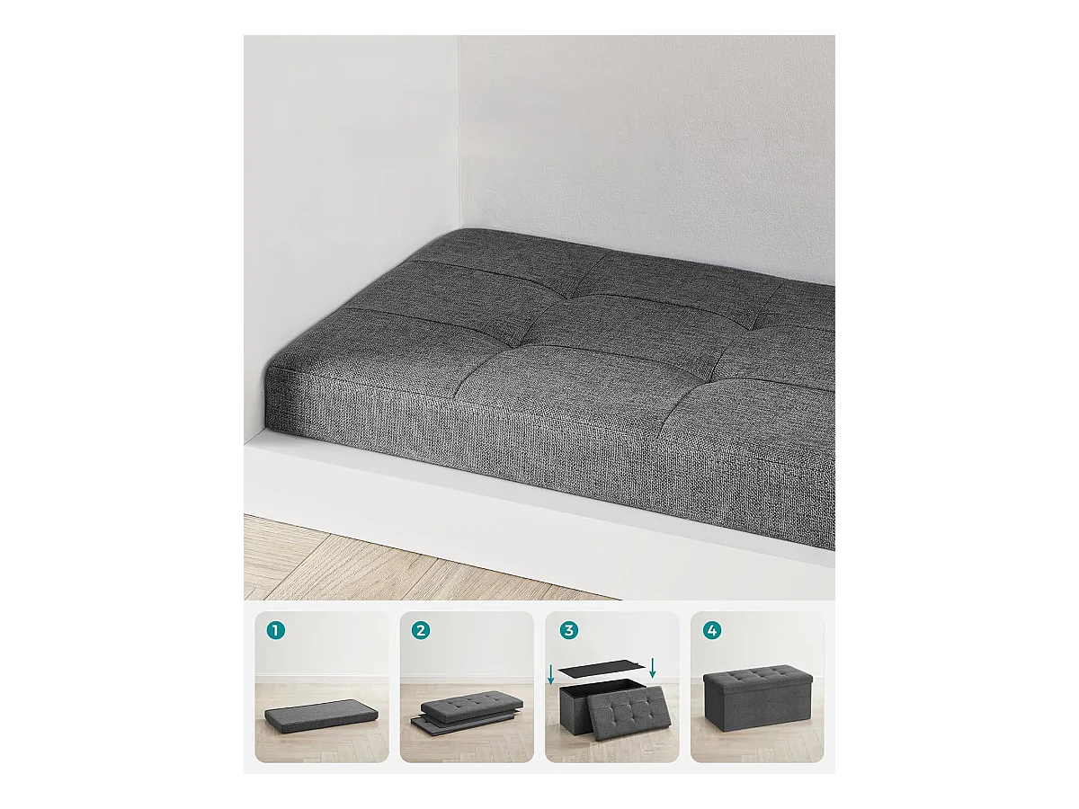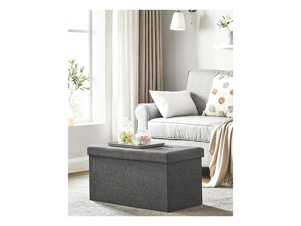 Pouf de rangement Valora gris foncé avec siège rabattable pour salon