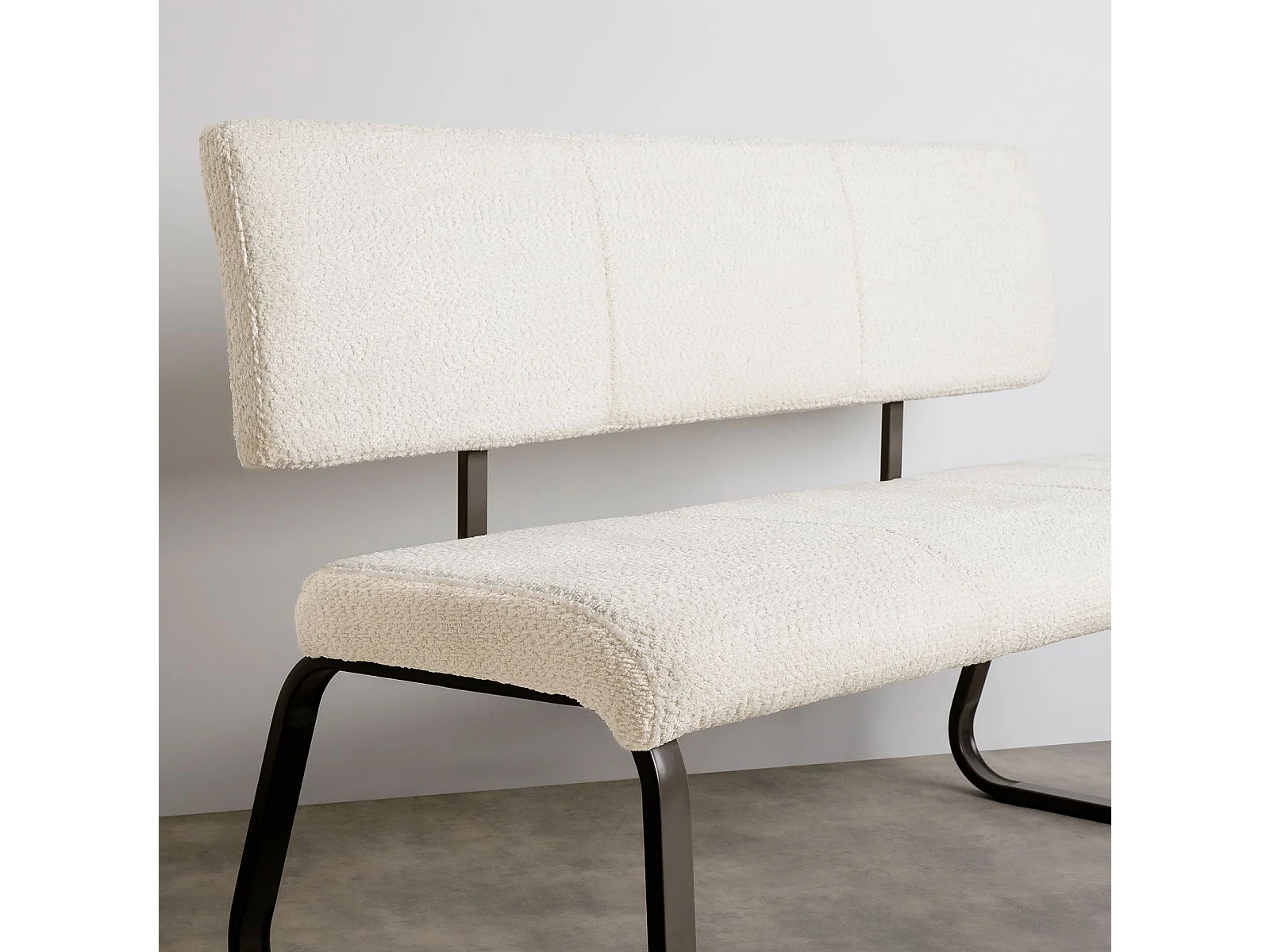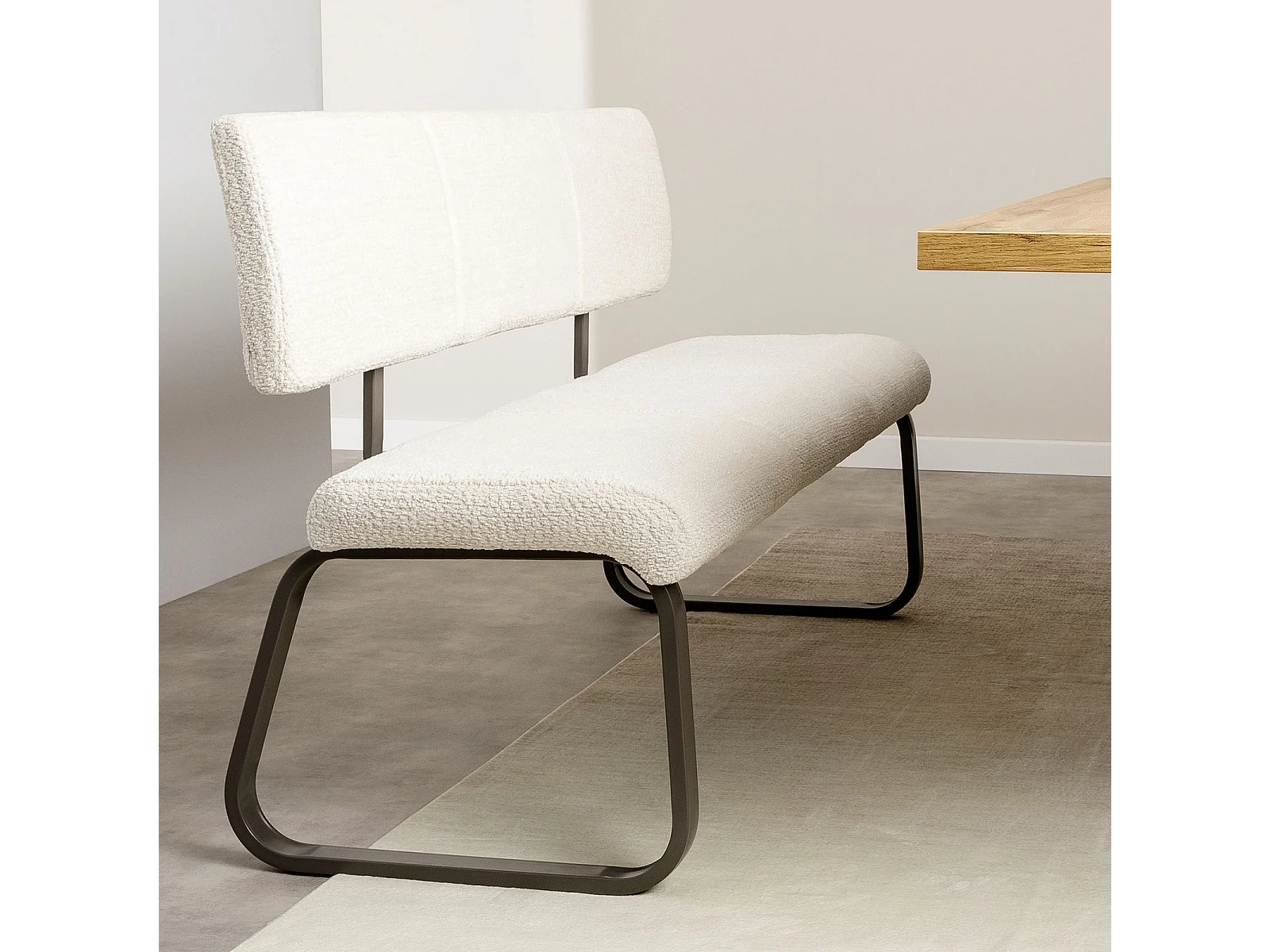 Banc d'entrée VILAS siège avec 3 places, banquette au piètement chromé, revêtement en tissu bouclé, blanc
