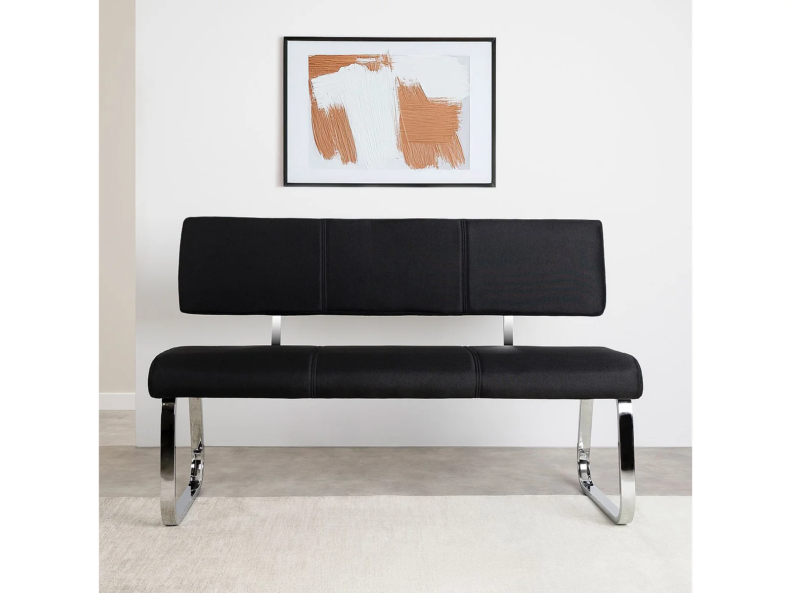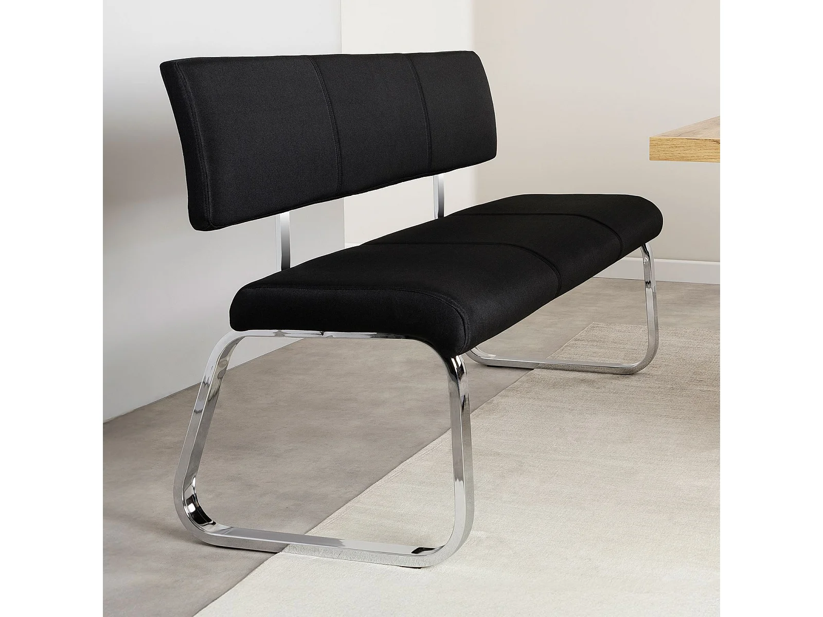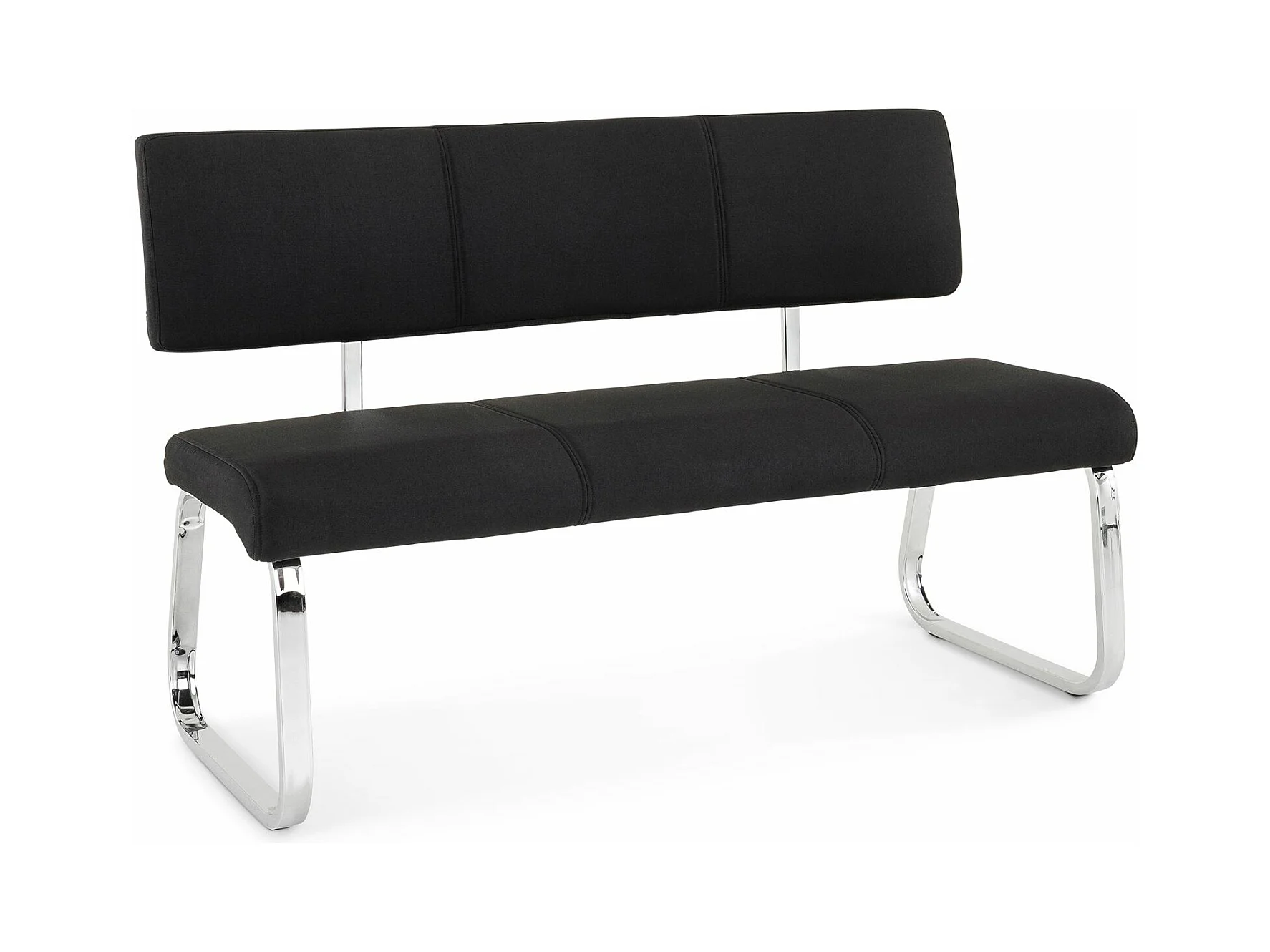 Banc design VILAS siège avec 3 places, banquette au piètement chromé et dossier au revêtement en tissu noir