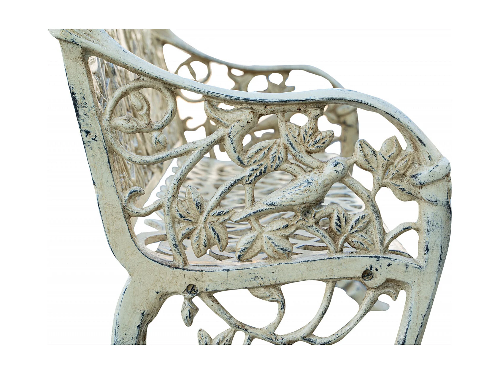 BISCOTTINI Banc – Fer Forgé Finition Blanc Antique – Extérieur – Banc de Jardin - Chaise ou Banc en Métal - Balcon - Terrasse – 105 x 62 x 90 cm