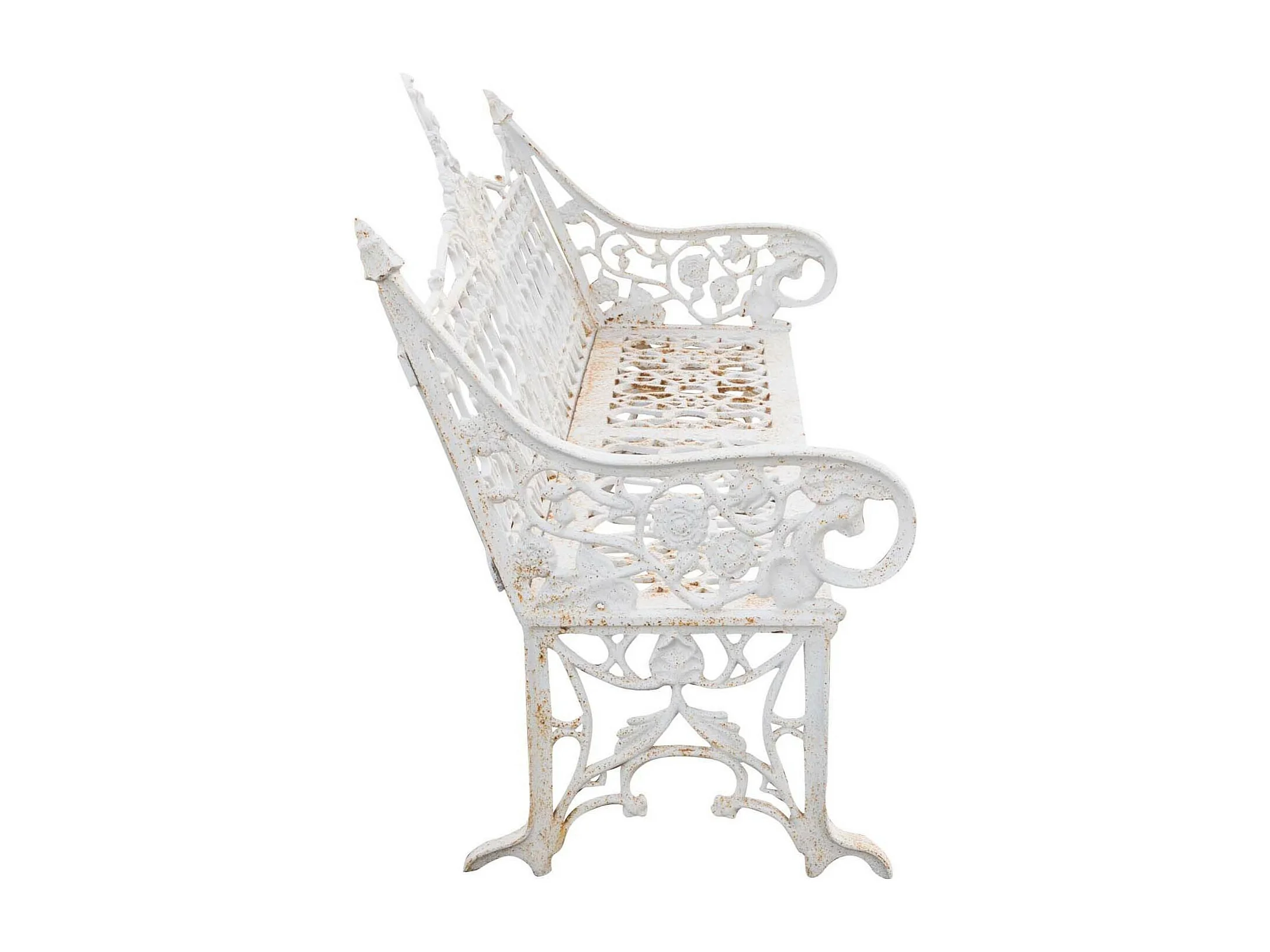 BISCOTTINI Banc – Fer Forgé Finition Blanc Antique – Extérieur – Banc de Jardin - Chaise ou Banc en Métal - Balcon - Terrasse –180 x 70 x 105 cm