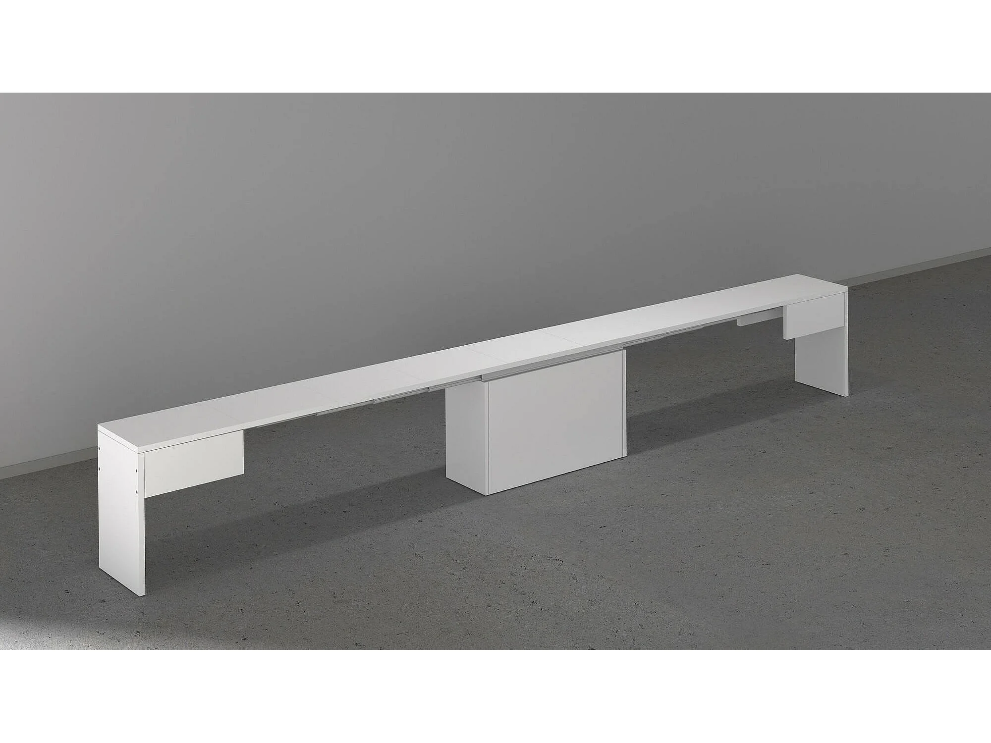 Banc Dollocol, Siège pour table à manger, Banc simple extensible, 290x25h45 cm, Blanc brillant