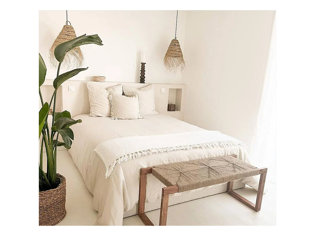 Banc en bois d'acacia et laine Marietta