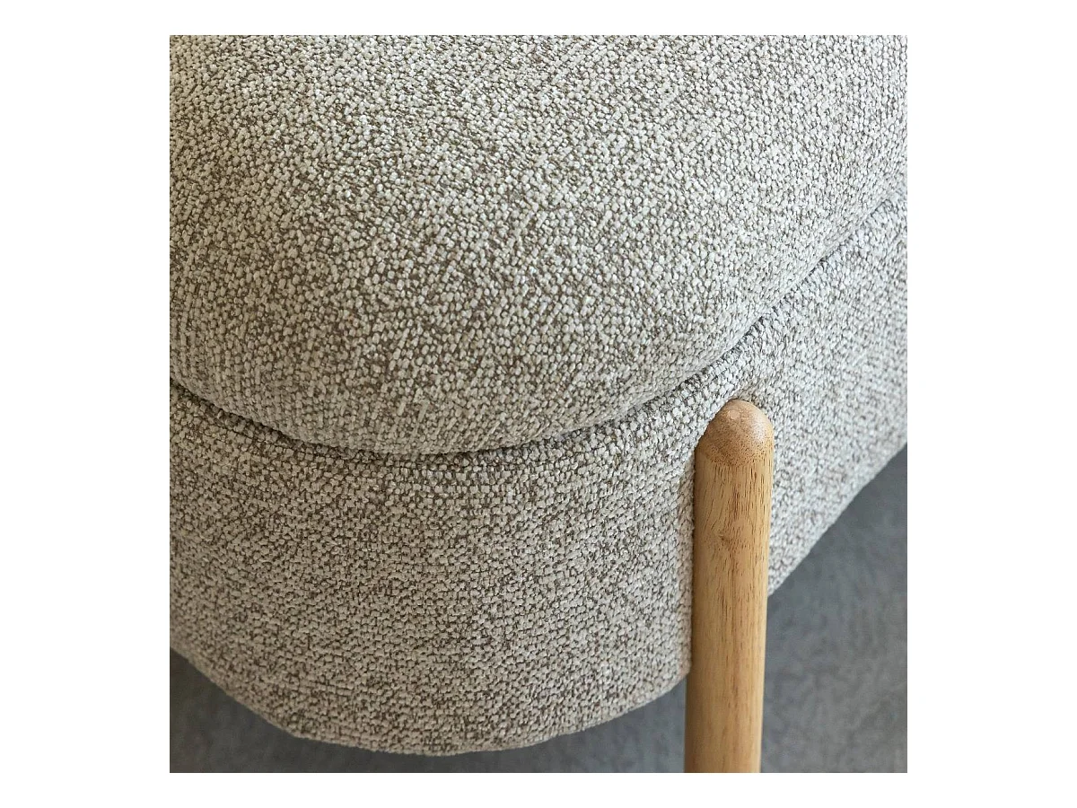 Banc en bois de pin et tissu bouclette gris clair Nério