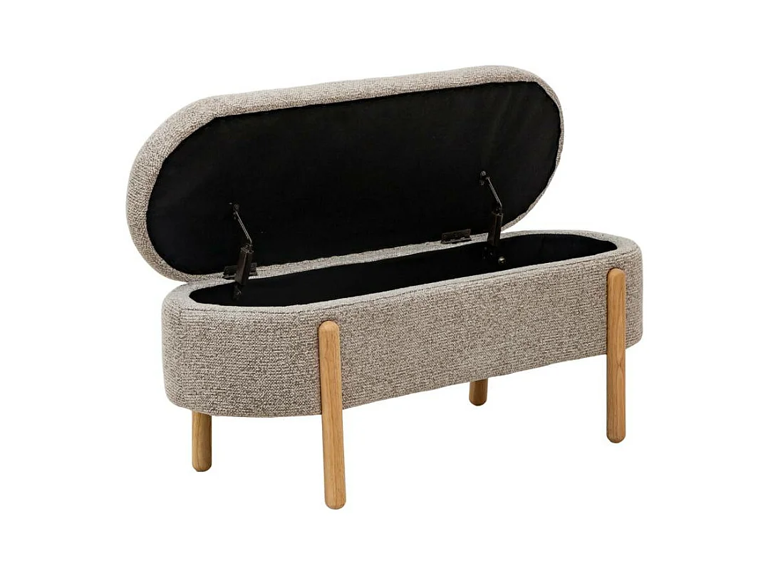 Banc de chambre avec rangement, pieds bois, tissu teddy gris clair (116x41x40.5cm)