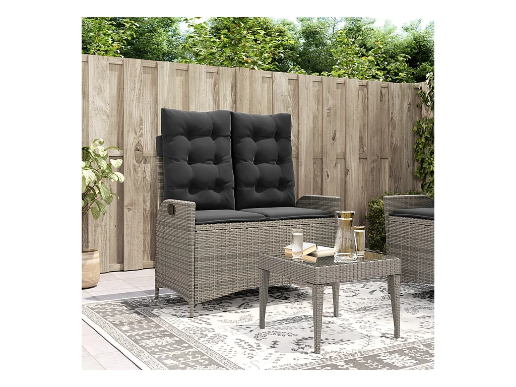 Banc inclinable de jardin avec coussins gris résine tressée REO33506