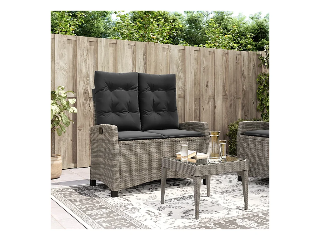 Banc inclinable de jardin avec coussins gris résine tressée REO45576