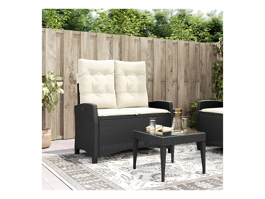 Banc inclinable de jardin avec coussins noir résine tressée REO72528
