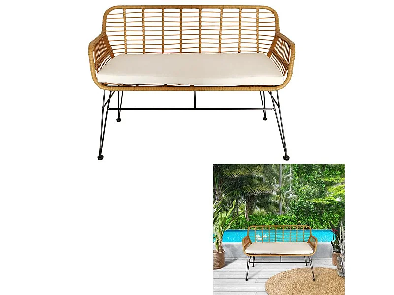 Banc Surabaya Coussin Beige Marron, Noir, Beige