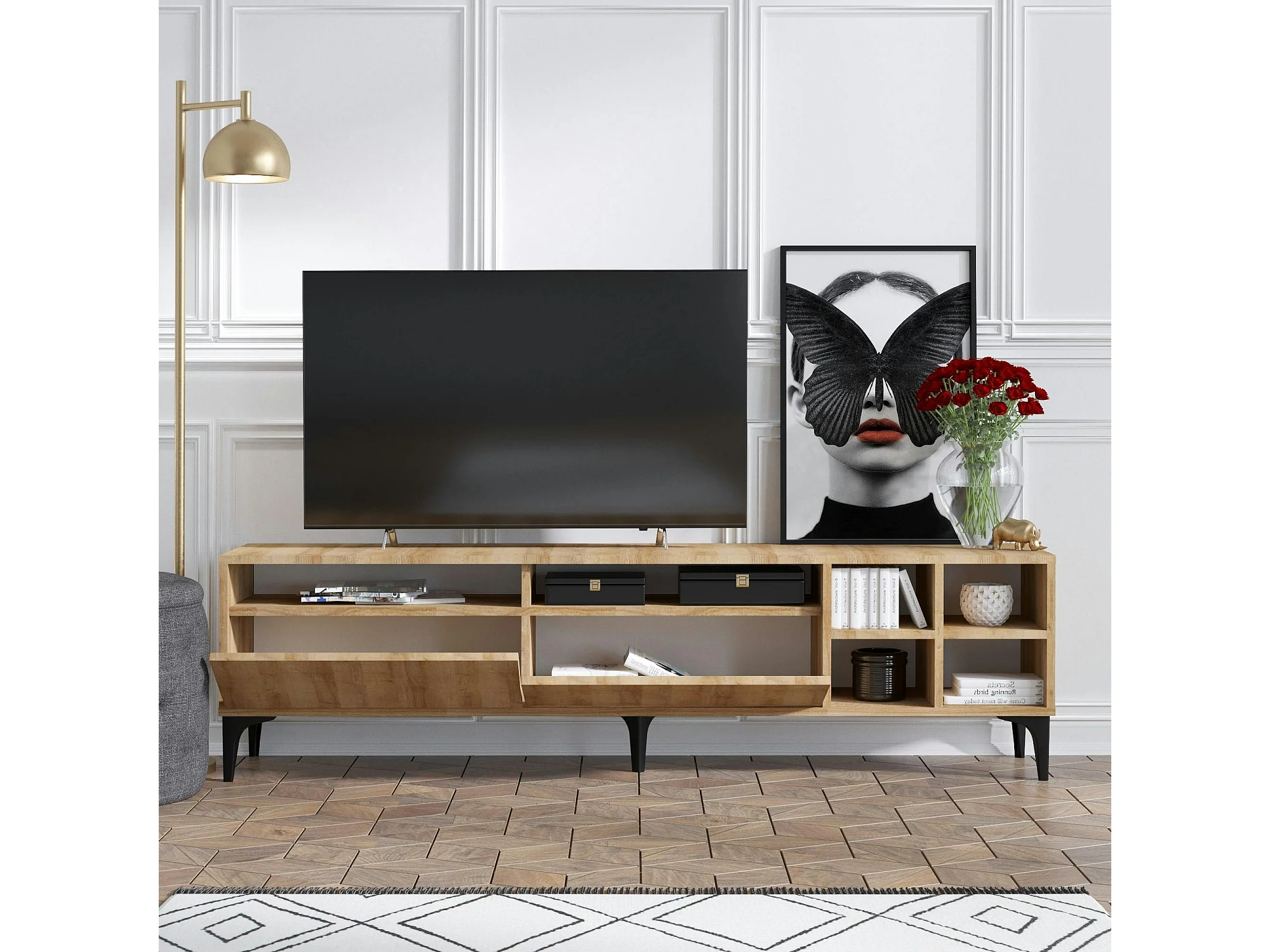 Banc TV avec rangement effet bois clair - 2 portes, 180 cm JENA