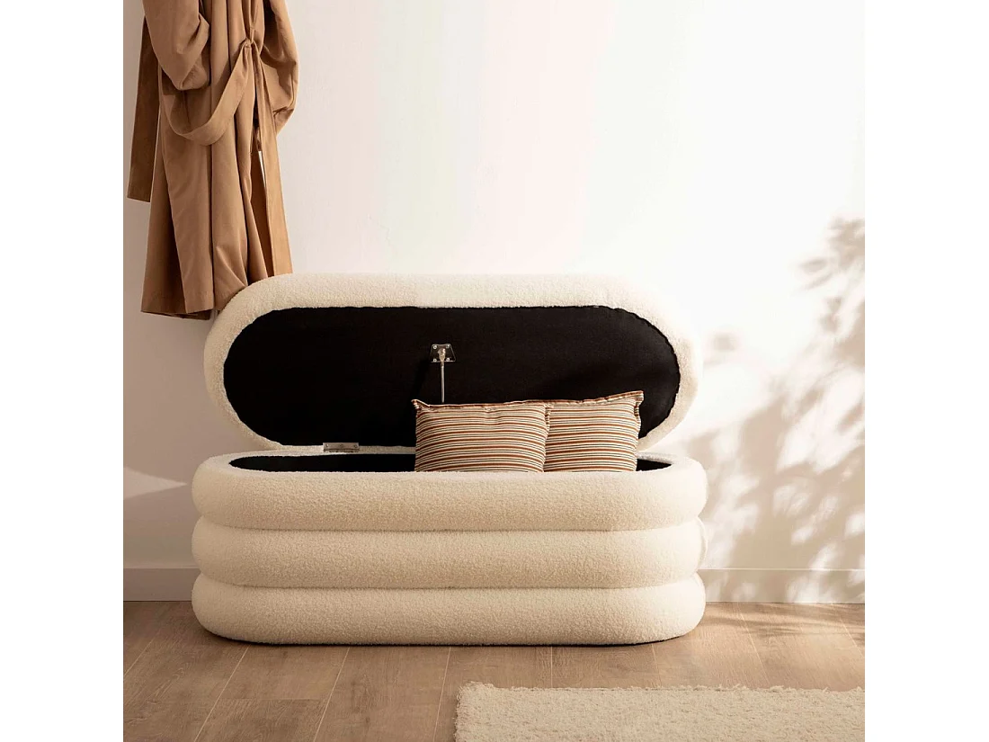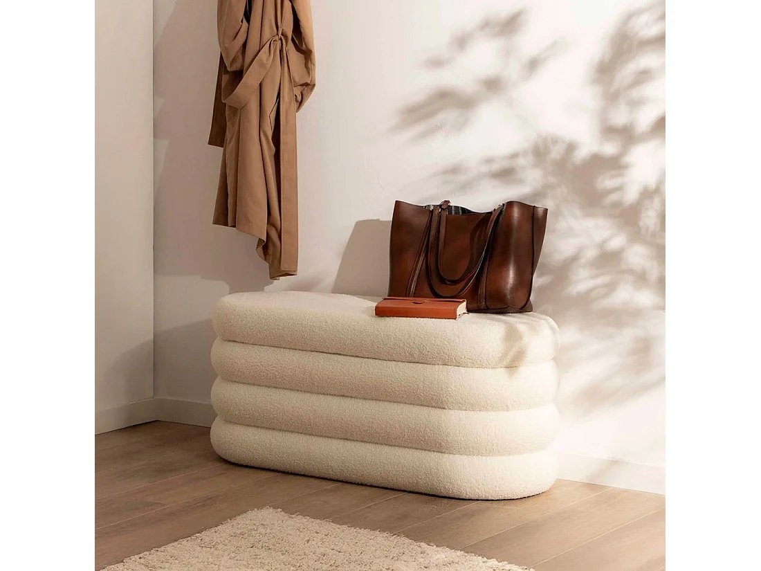 Banco en revêtement en moutonnet blanc 100x45 cm-Roma