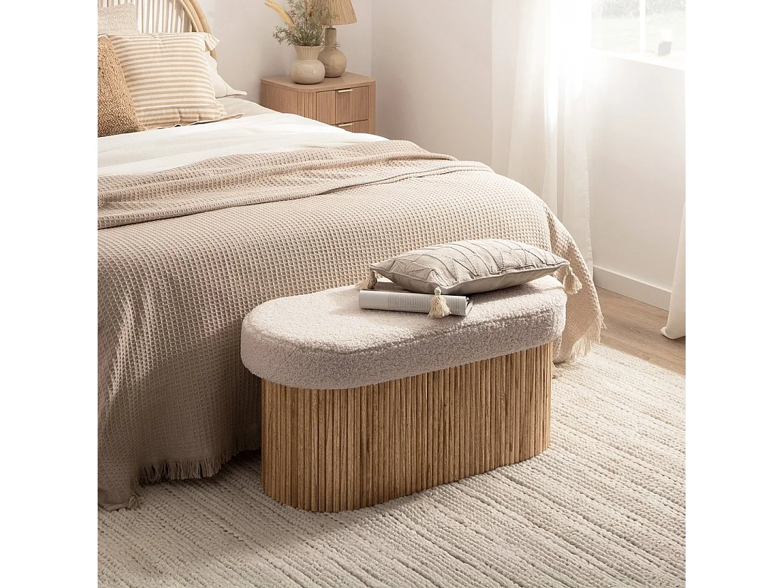 Banco en revêtement en moutonnet blanc 93x44 cm-Naira