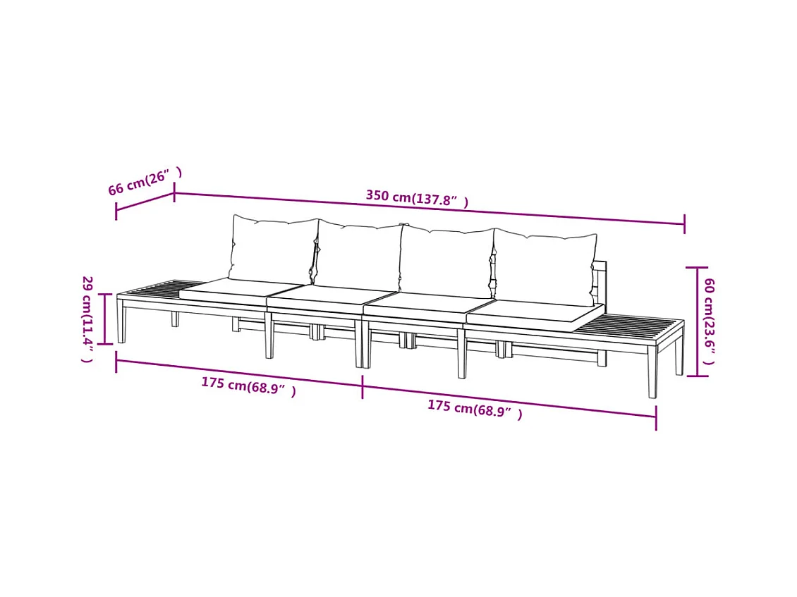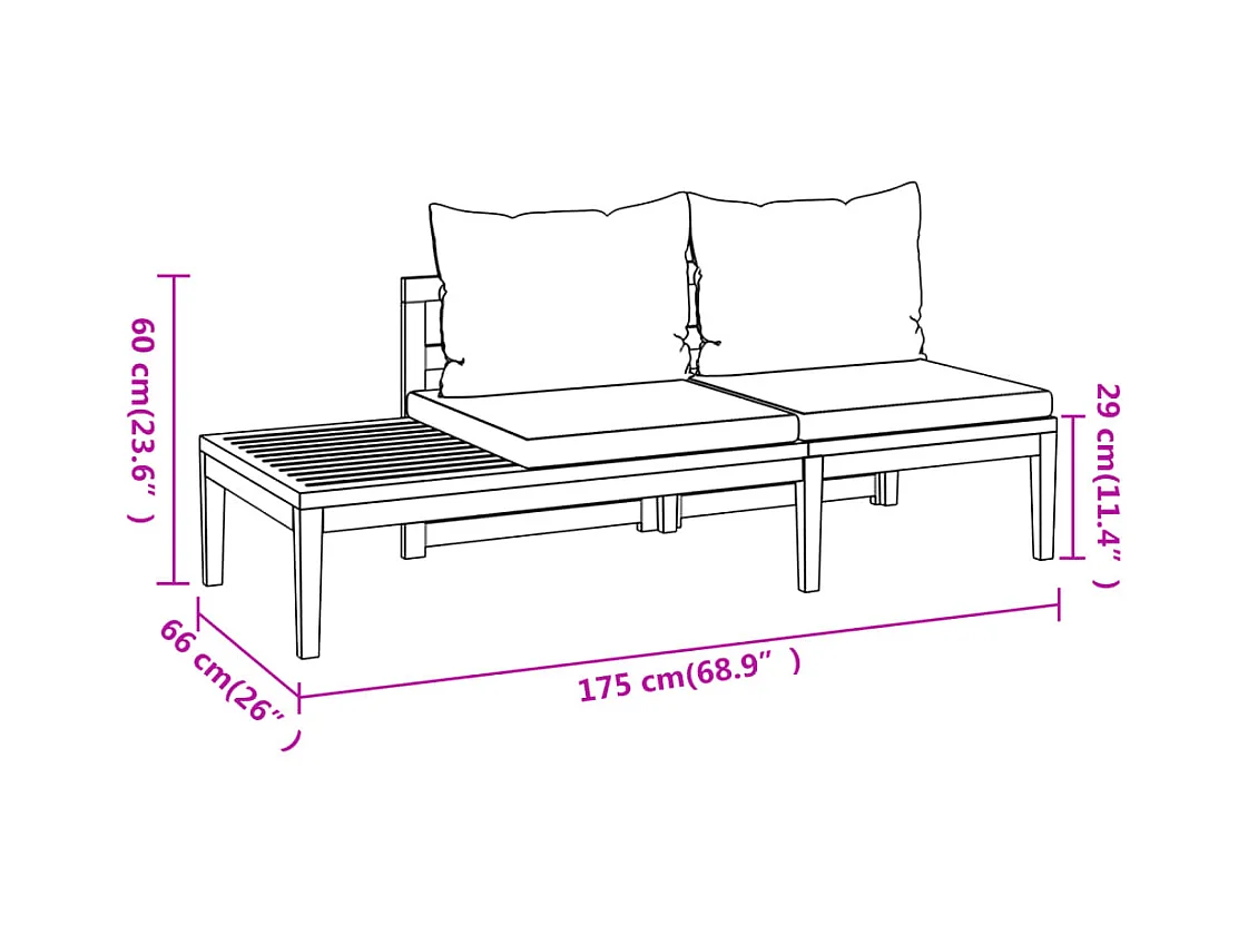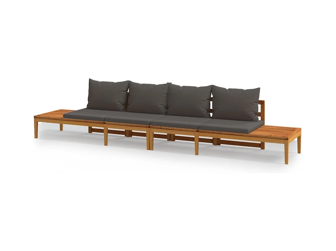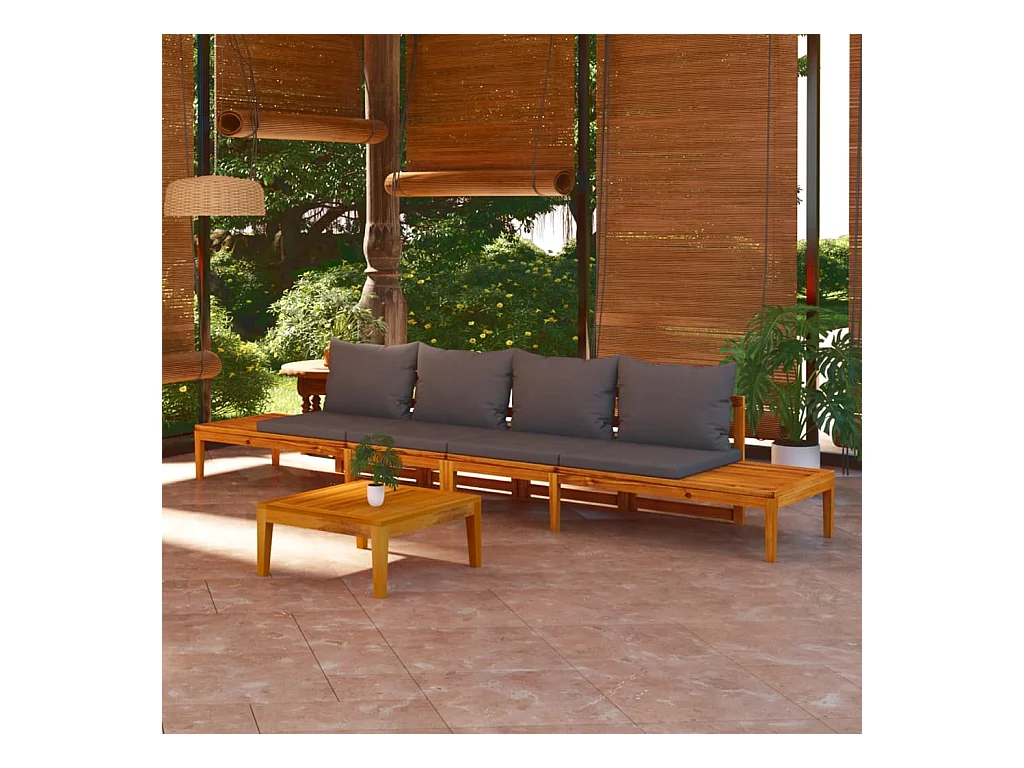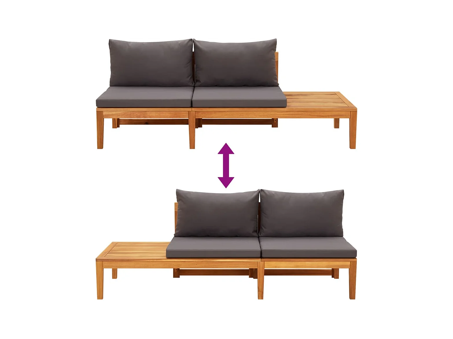 Bancs de jardin avec coussins gris foncé 2 pièces Bois d'acacia