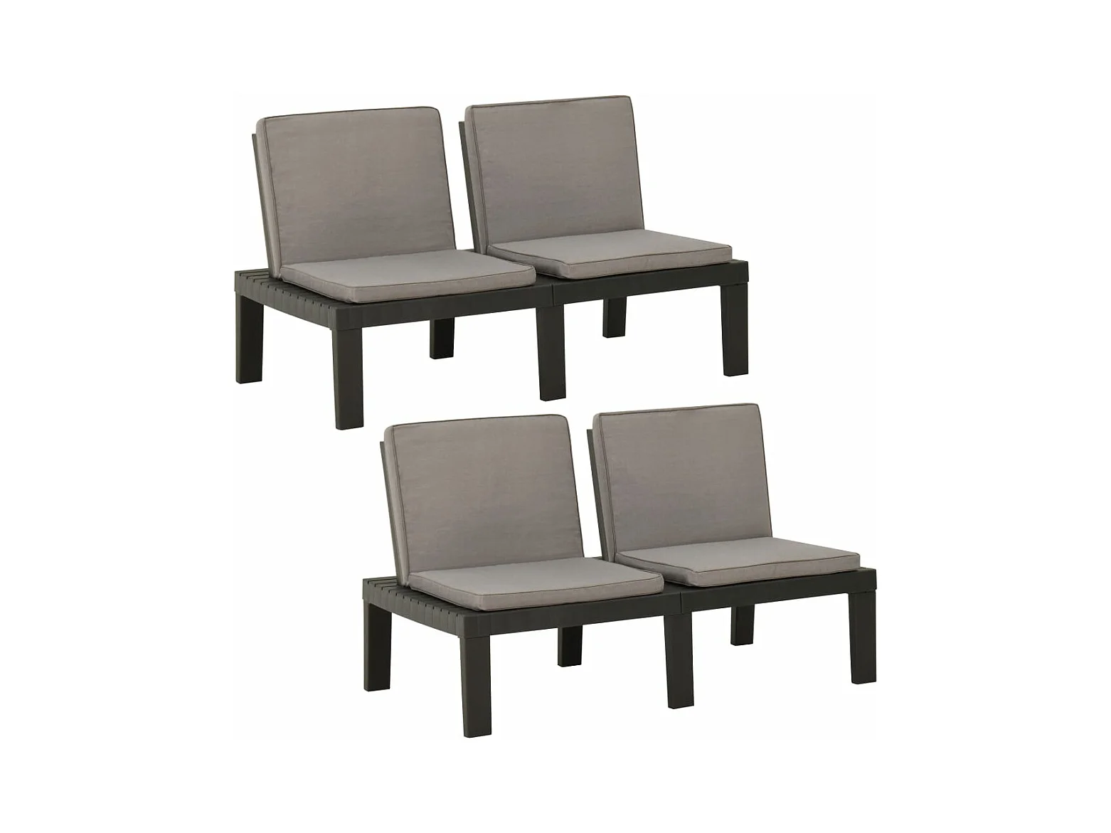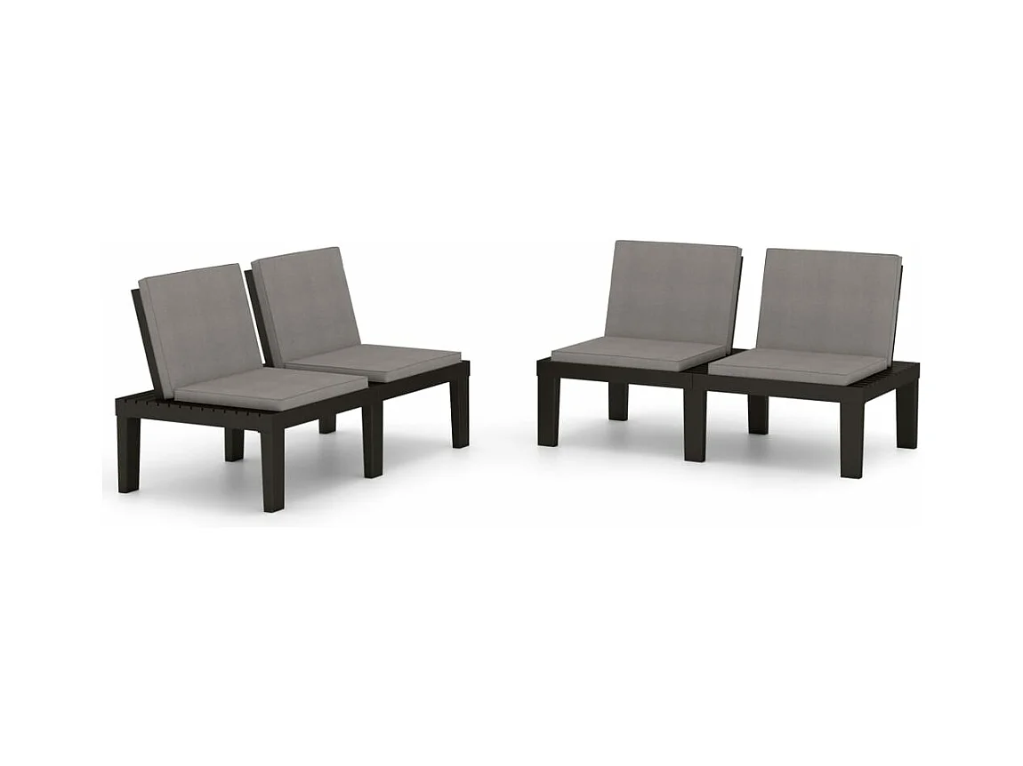 Bancs de salon de jardin avec coussins 2 pcs Plastique Gris REO60885
