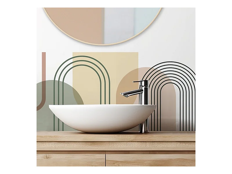 Crédence adhésive pour salle de bain en PVC géométrique beige 140x30 cm (en 2 bandeaux)
