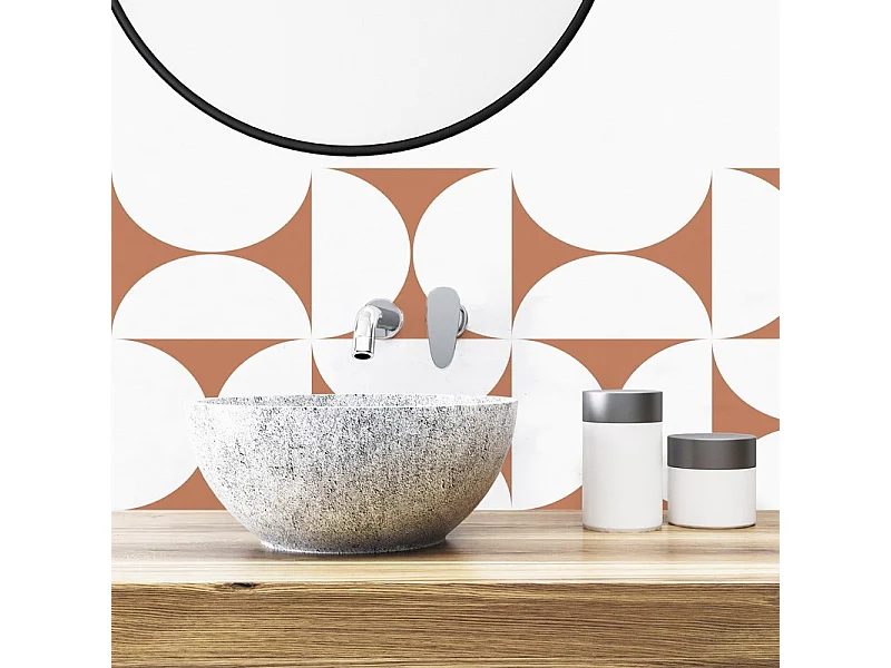 Crédence adhésive pour salle de bain en PVC géométrique terracotta 140x30 cm (en 2 bandeaux)