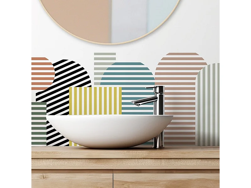 Crédence adhésive pour salle de bain en PVC géométrique terracotta 140x30 cm (en 2 bandeaux)