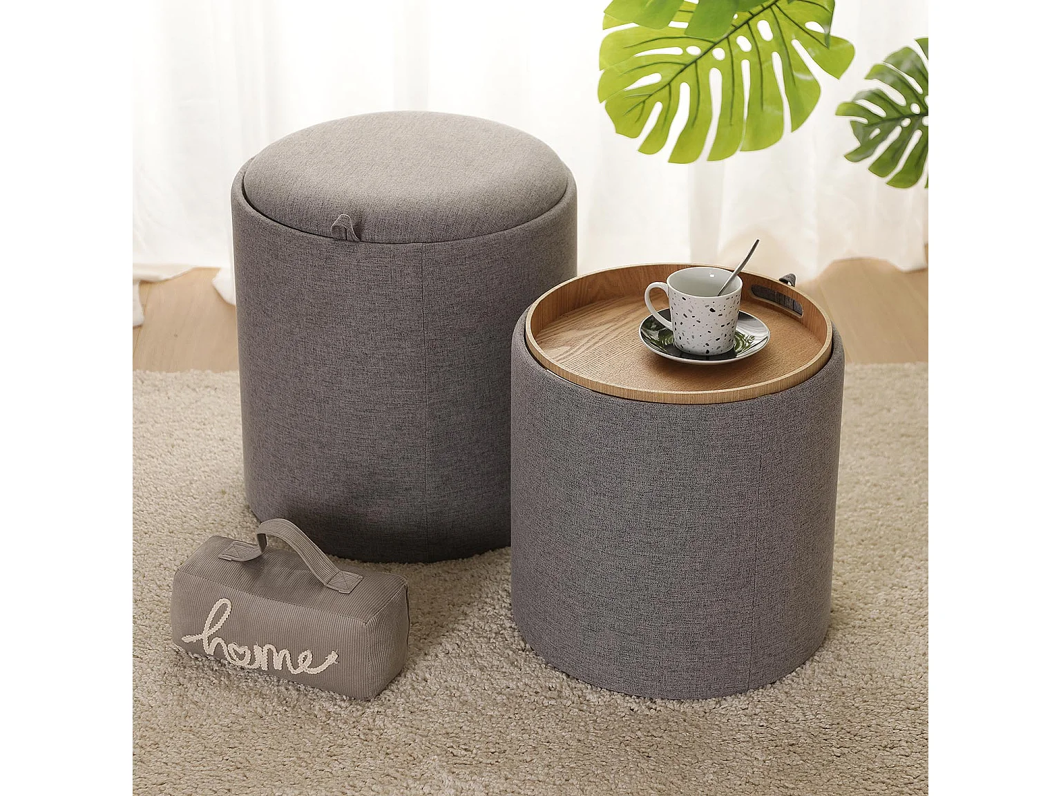 Tabouret pouf Bangalore, 44 x 39 x 39 cm, Coton, Gris foncé