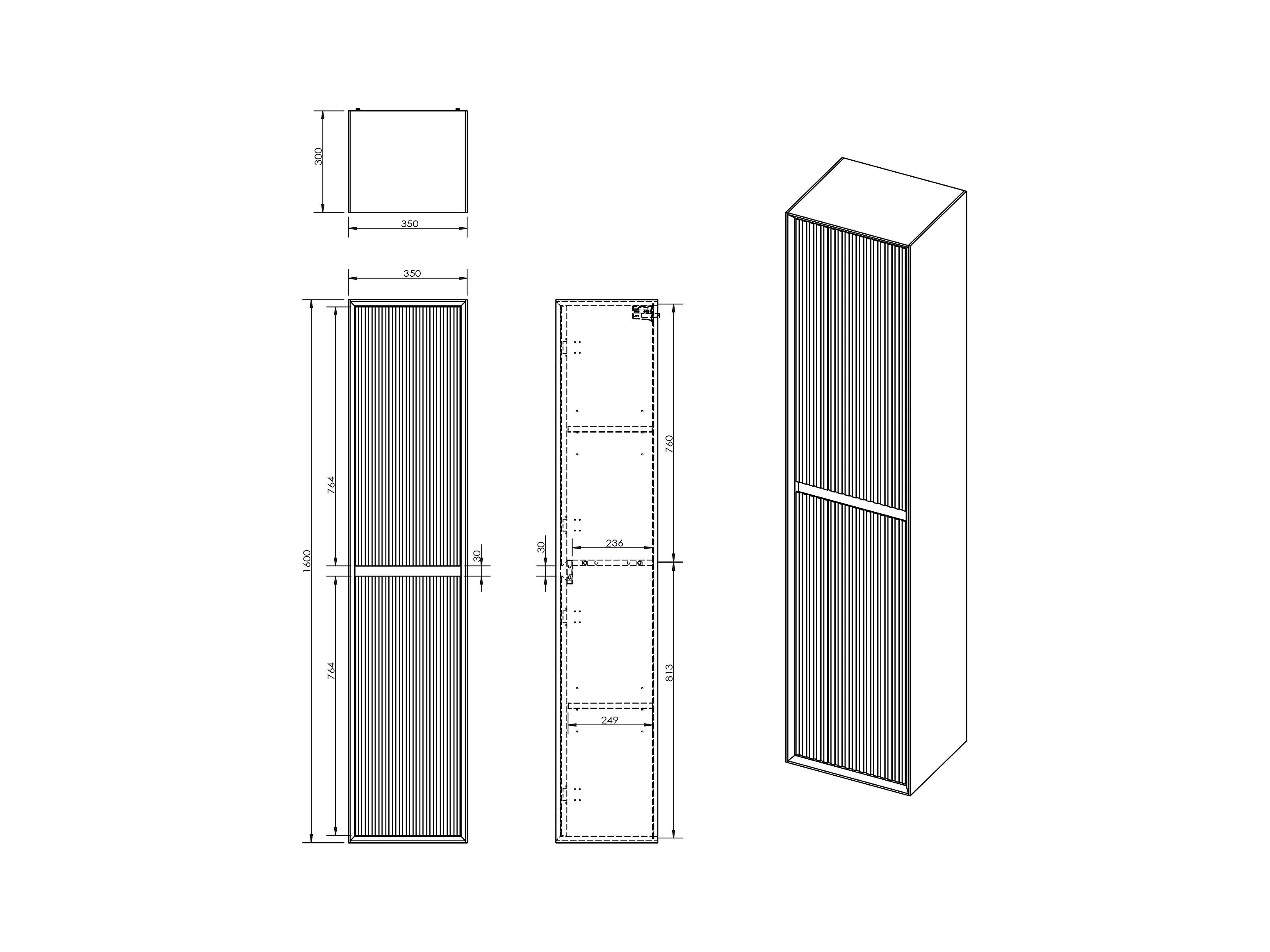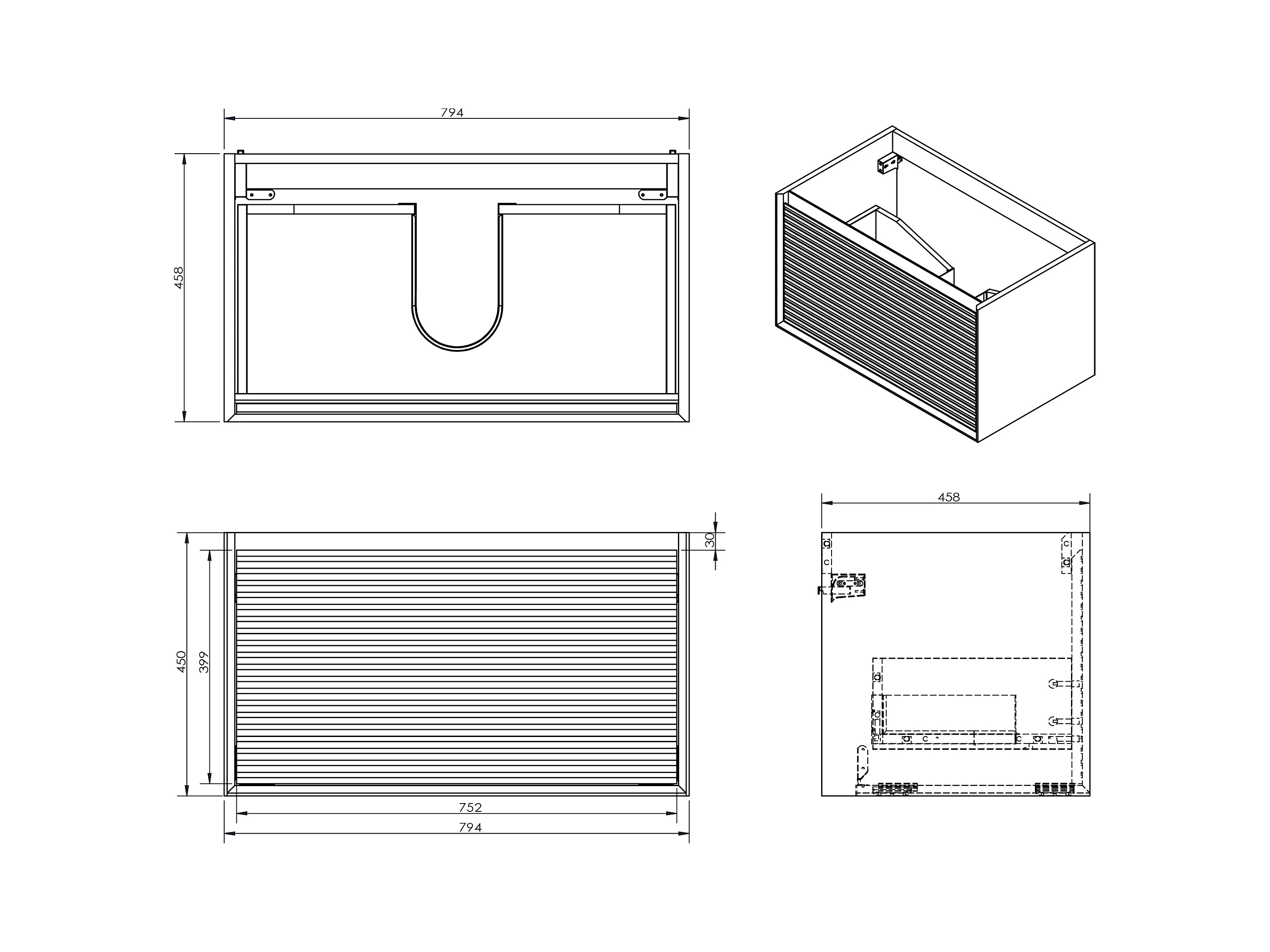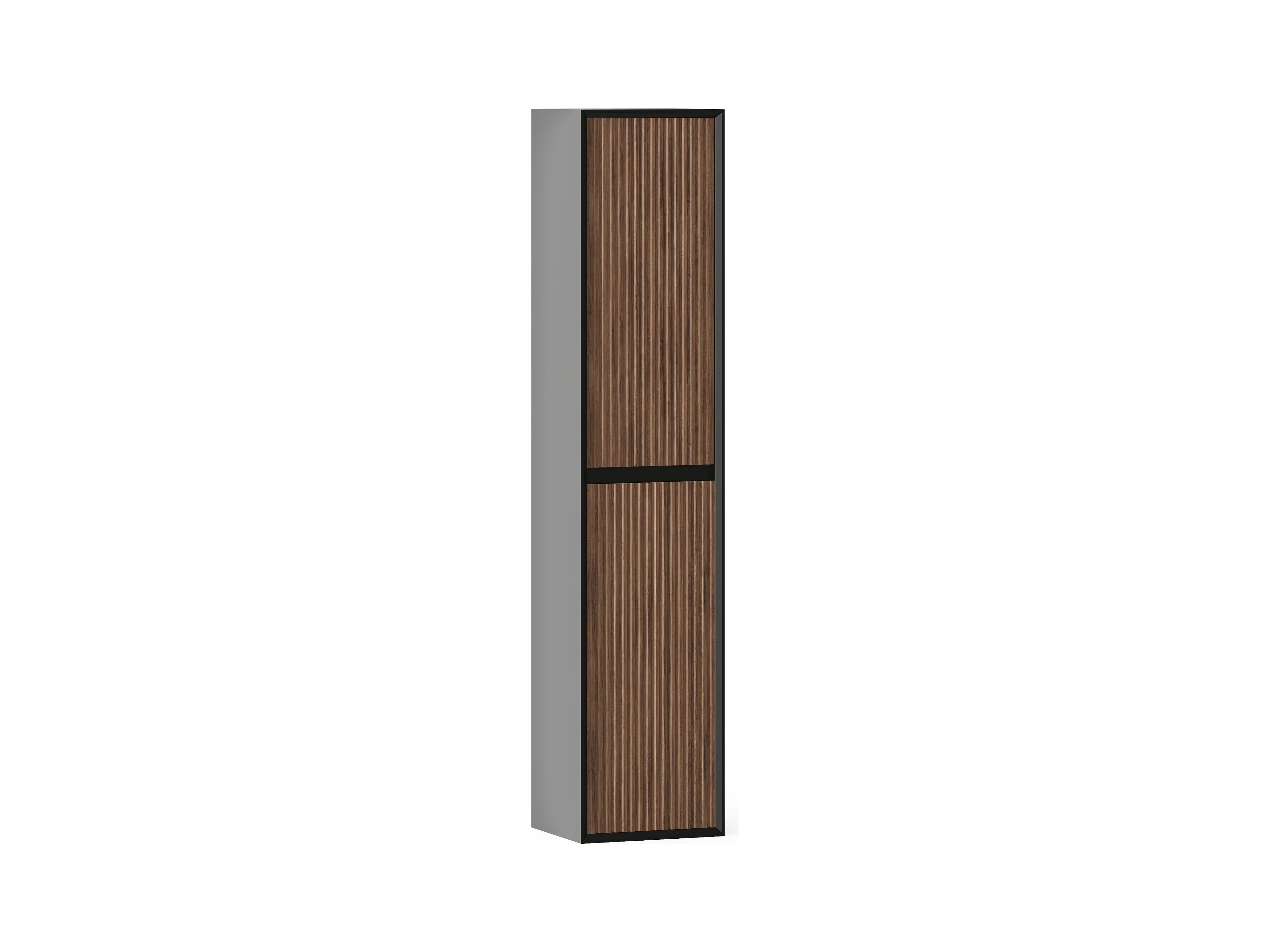 Meuble de salle de bain suspendu strié avec vasque à encastrer et colonne - Coloris naturel foncé et noir - 80 cm - BANIVA