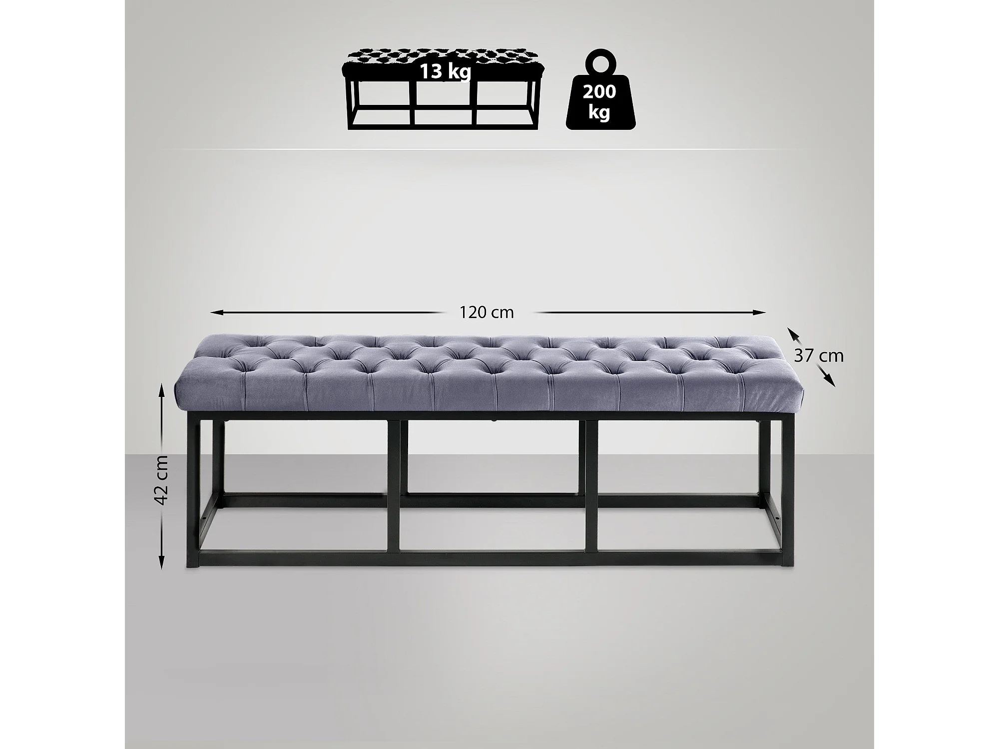 Banquette capitonné bout de métal grise 120 x 37 x 42 cm BAN10110