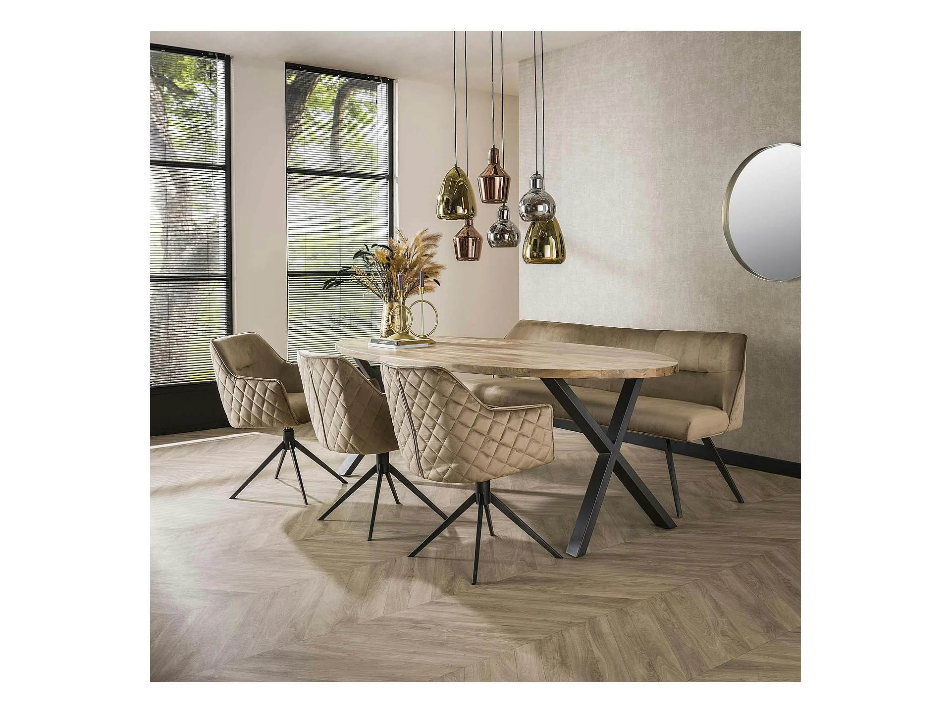 Banquette de salle à manger en velours beige avec dossier motif croisé 180 cm MELBOURNE