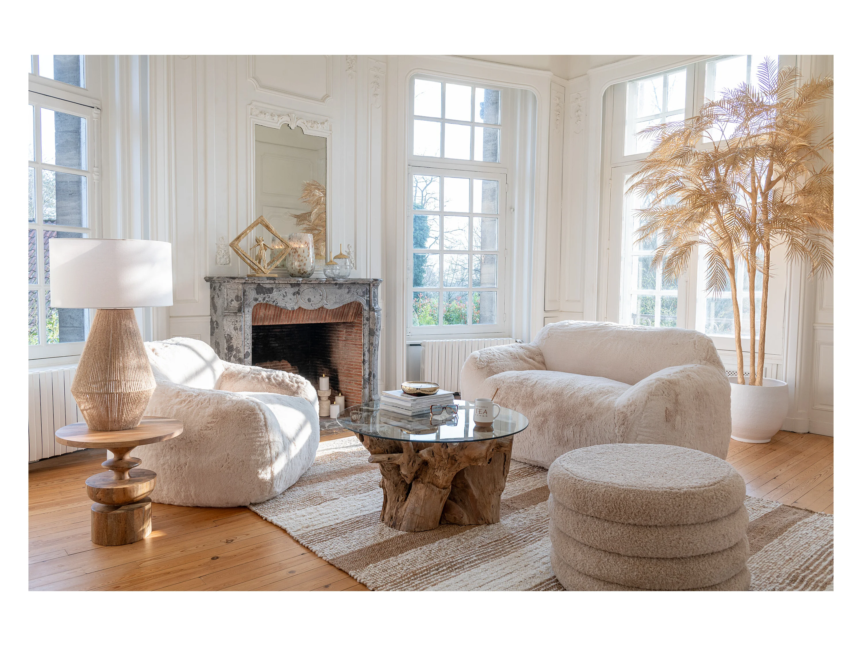 Banquette design Kuty 152cm - Luxe et douceur avec effet peluche-Couleur Beige clair