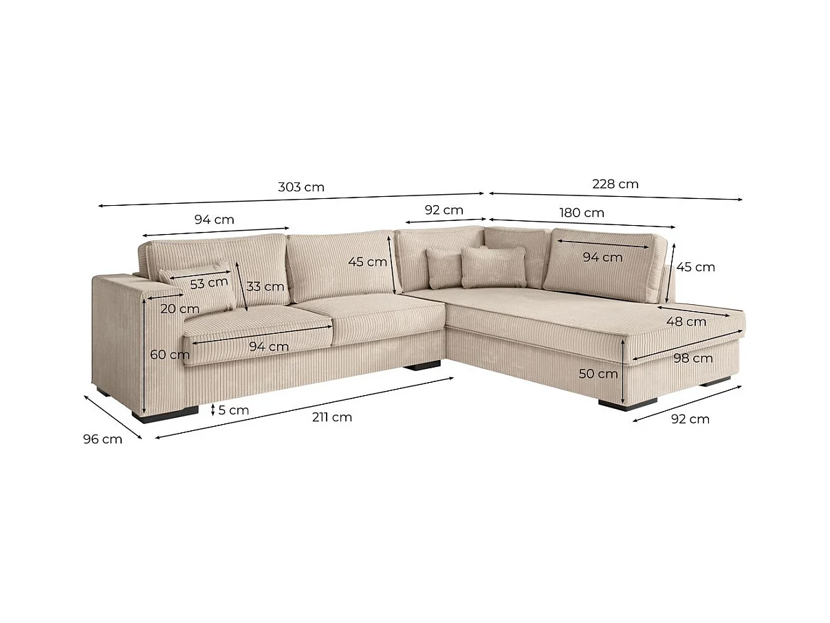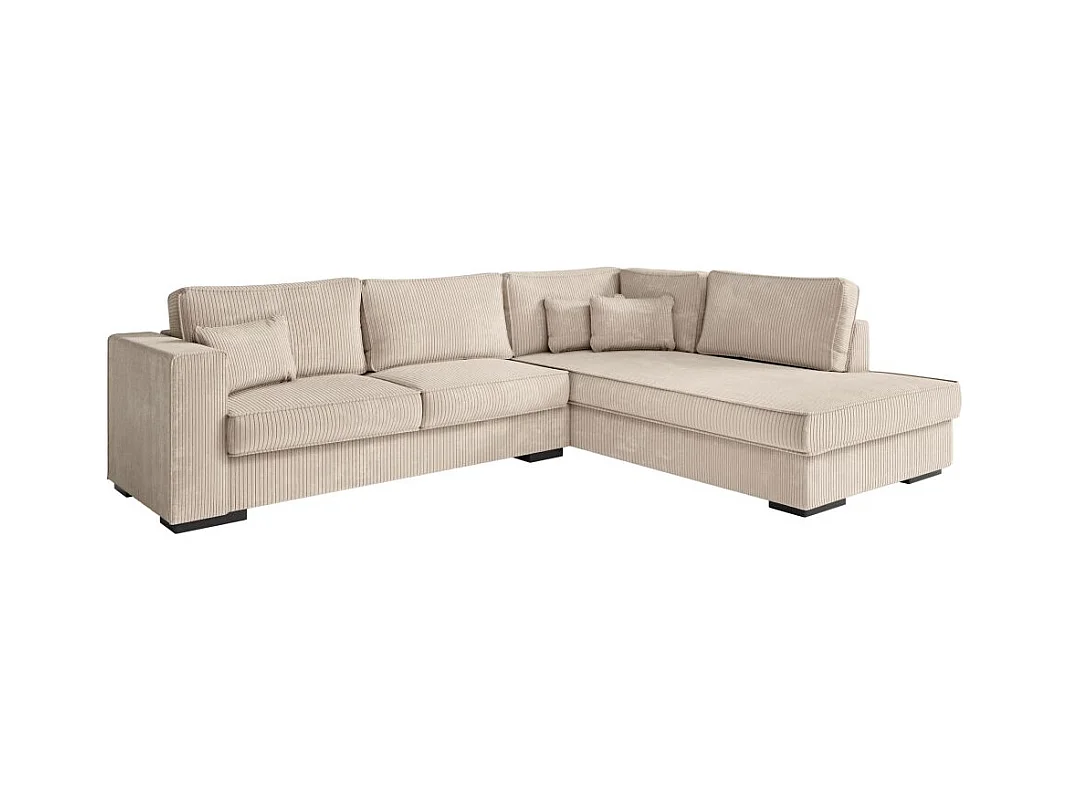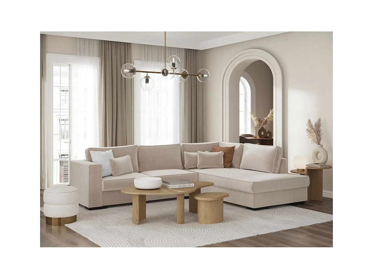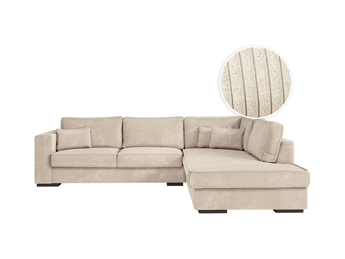 Canapé d'angle droit Belami XXL 6 places en velours côtelé - Beige - L303 x P228 x H86cm - Loungitude