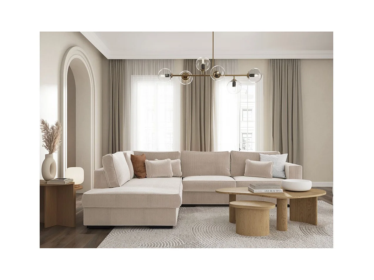 Canapé d'angle gauche Belami XXL 6 places en velours côtelé - Beige - L303 x P228 x H86cm - Loungitude