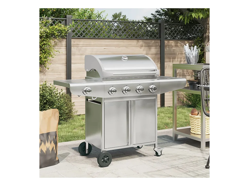 Barbecue à gaz avec 5 br?leurs argenté acier inoxydable