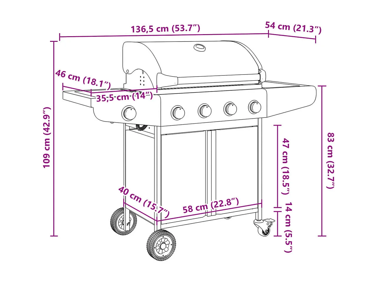 Barbecue à gaz avec 5 brûleurs argenté acier inoxydable