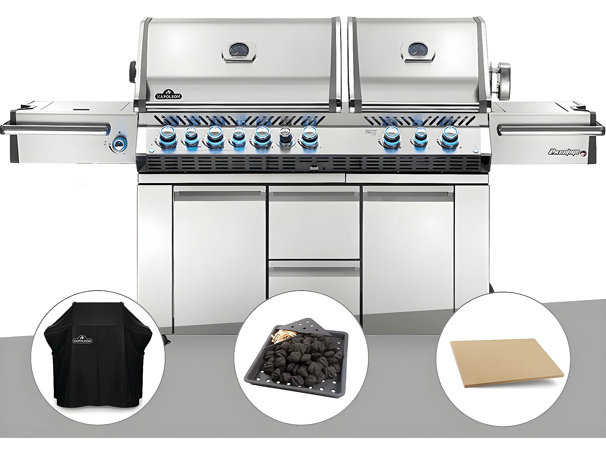 Barbecue à gaz Prestige Pro 825 + Housse de protection + Plateau charbon + Pierre à pizza large rectangle - Napoleon