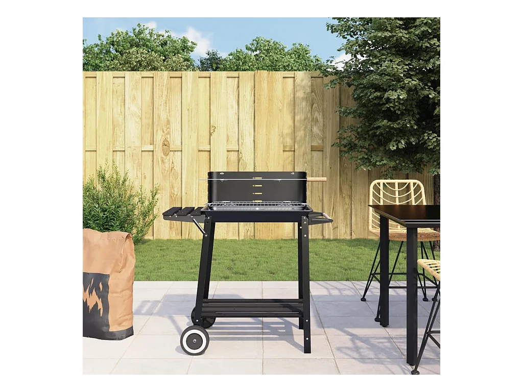 Barbecue au charbon de bois avec roues noir acier FR320342