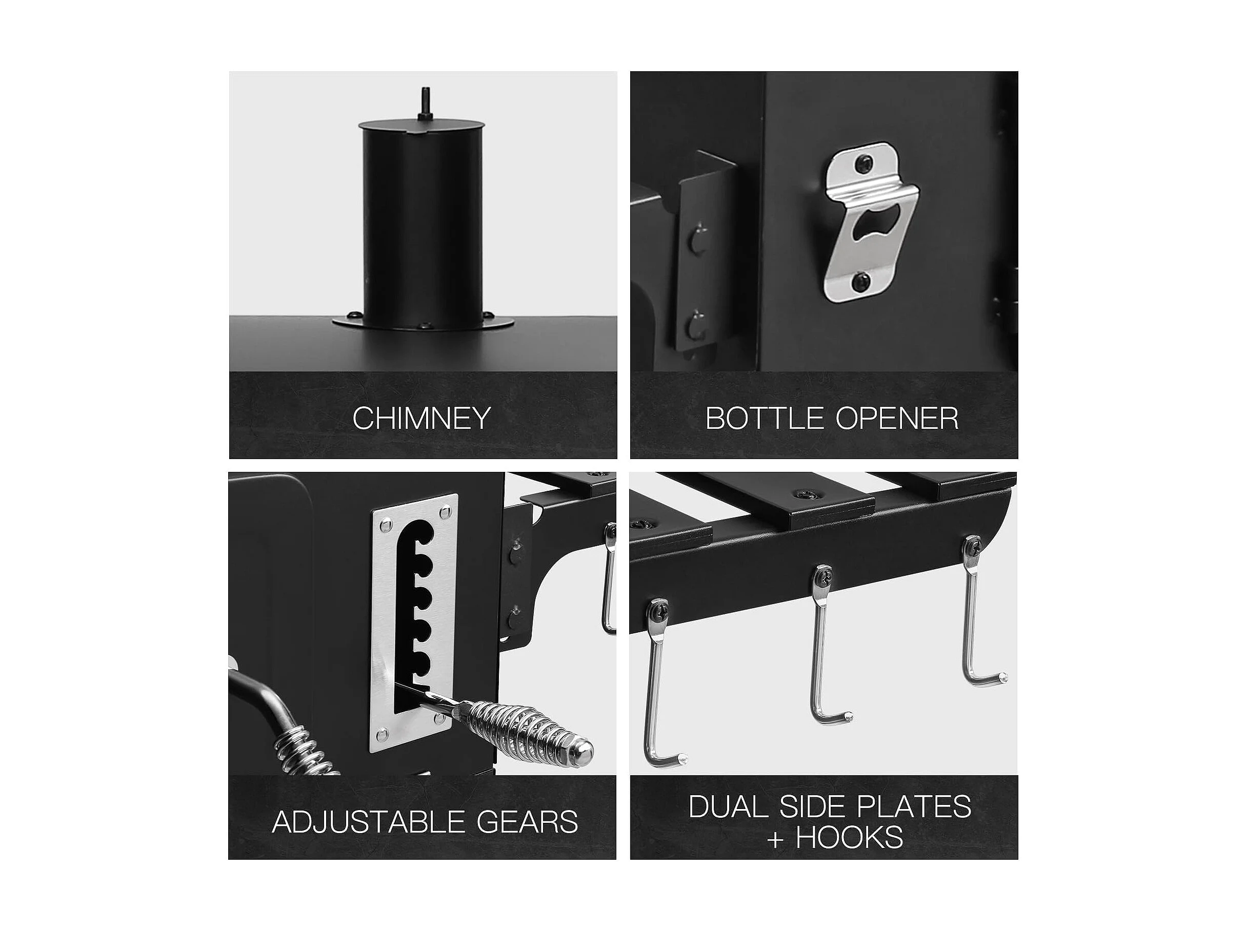 Barbecue au Charbon de Bois XXL, Barbecue avec Couvercle, Thermomètre, Gants Anti-Chaleur, Cheminée et Ouvre-Bouteille Intégré, Fumoir Grand Modèle