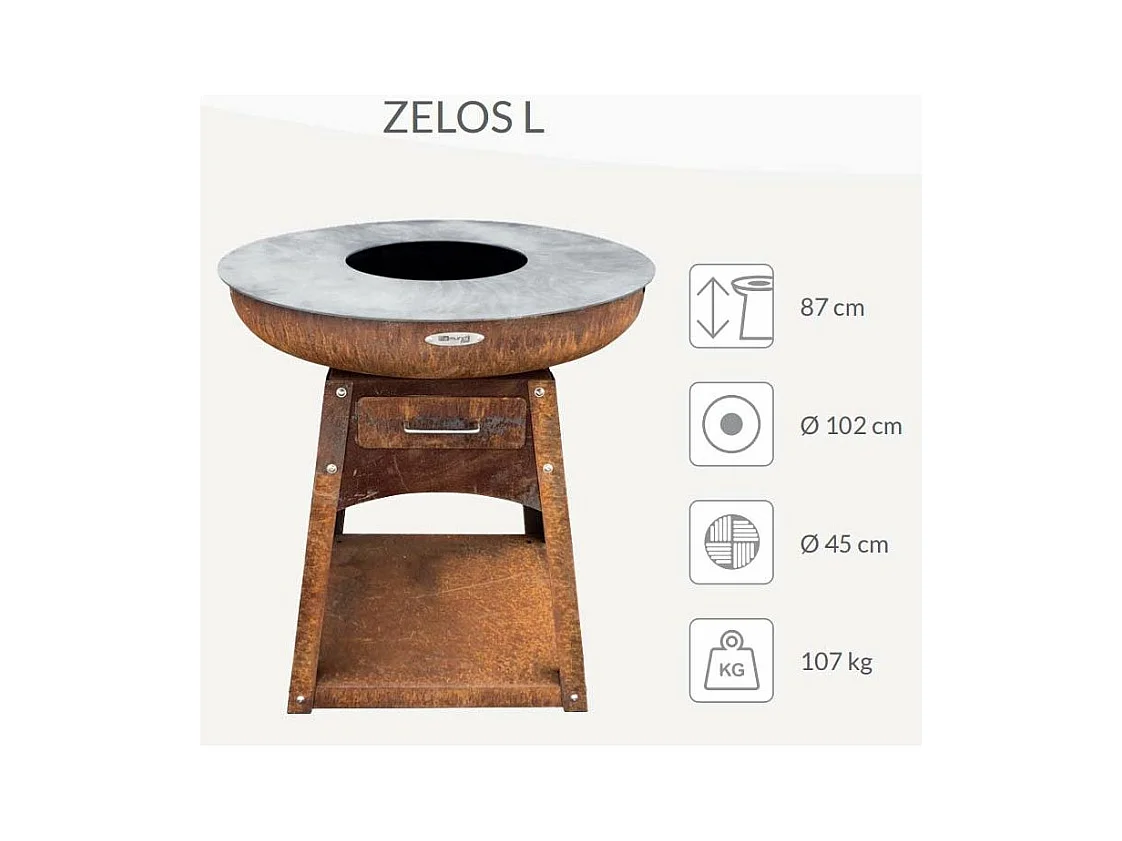 Barbecue brasero en acier Zelos Hauteur 87 cm Diamètre 102 cm