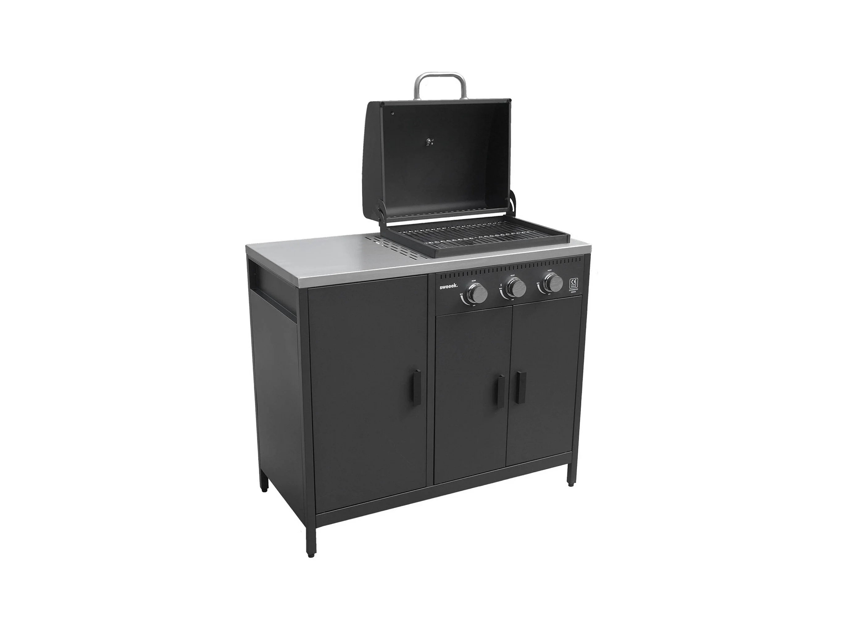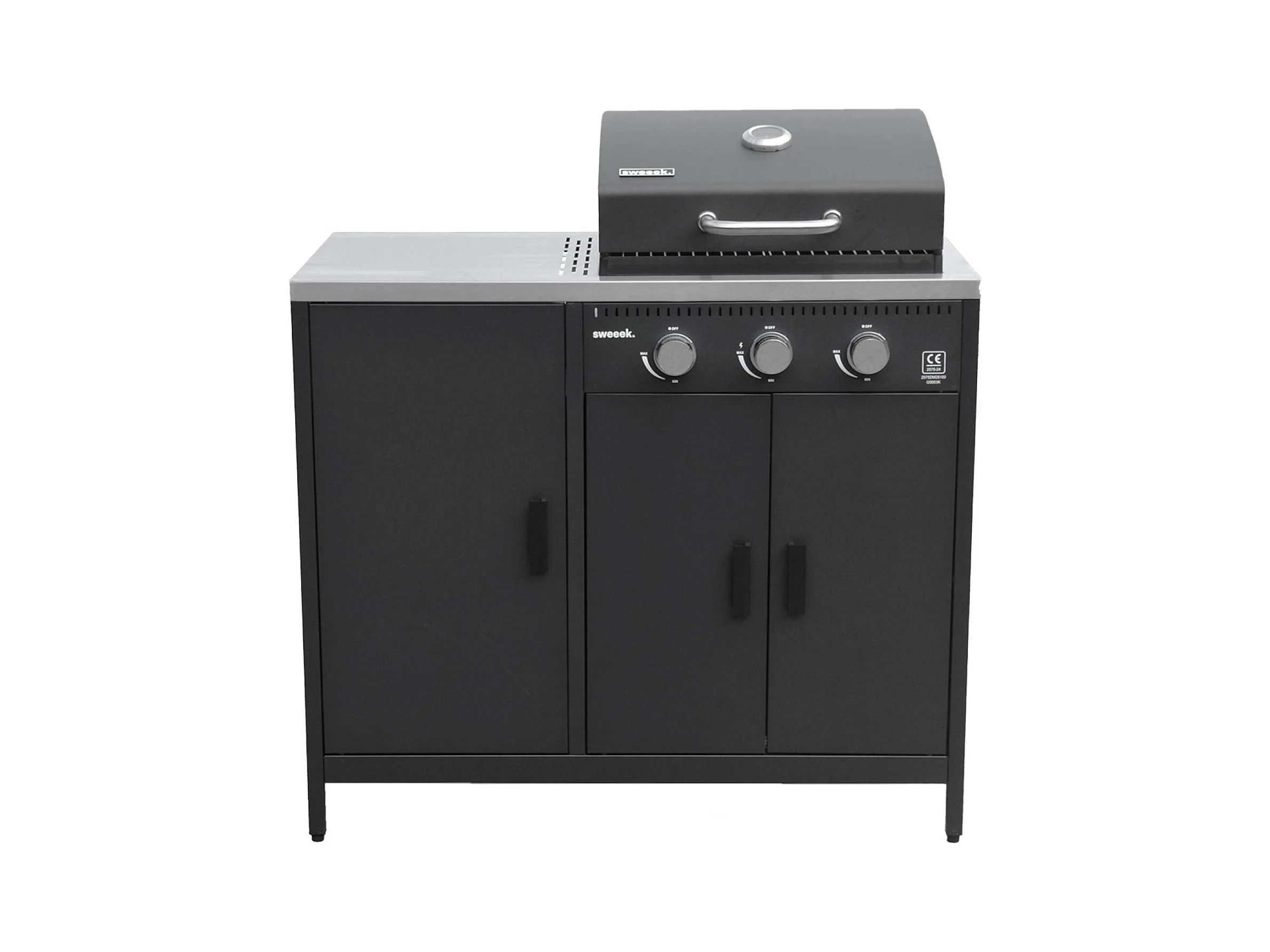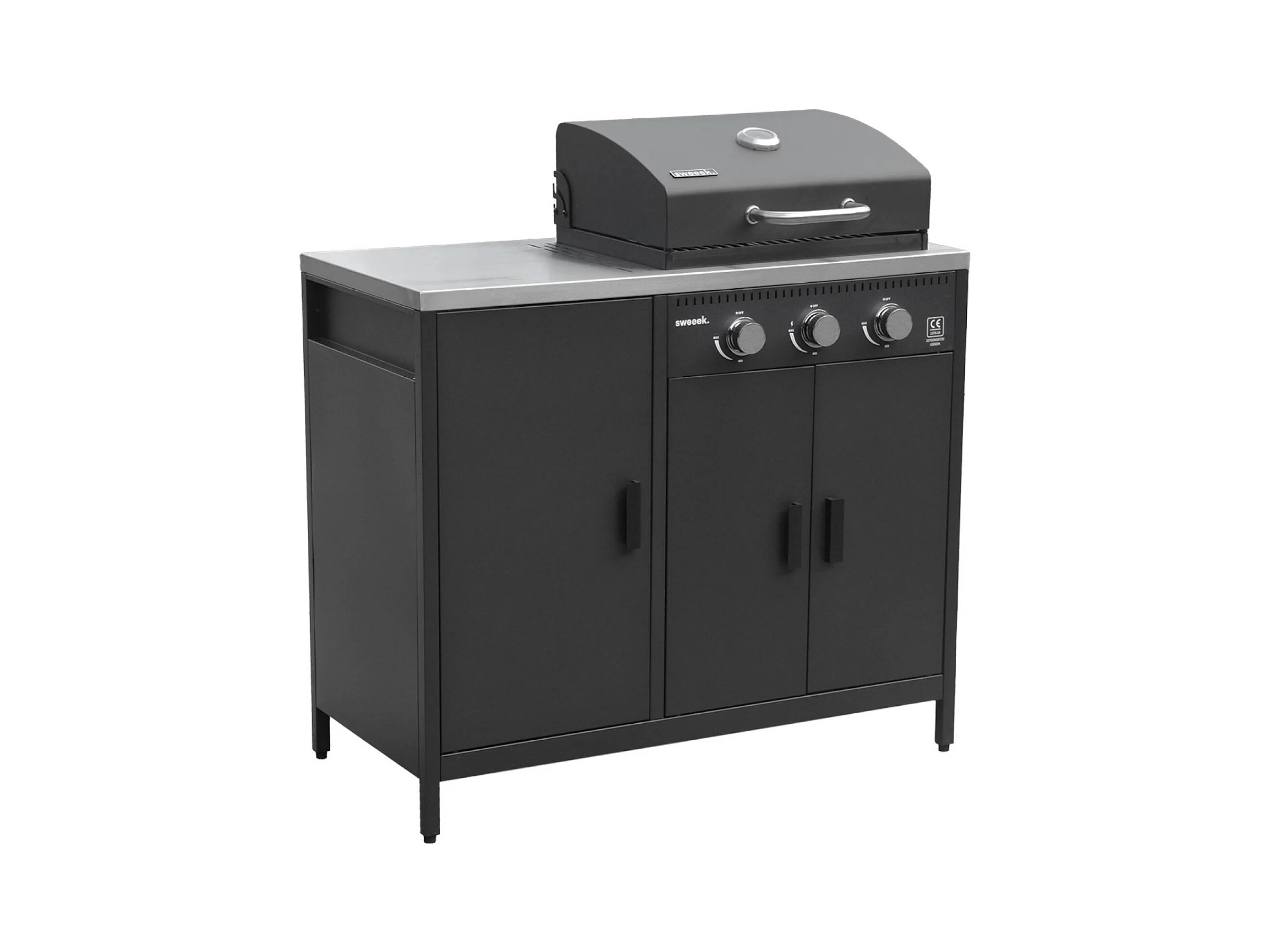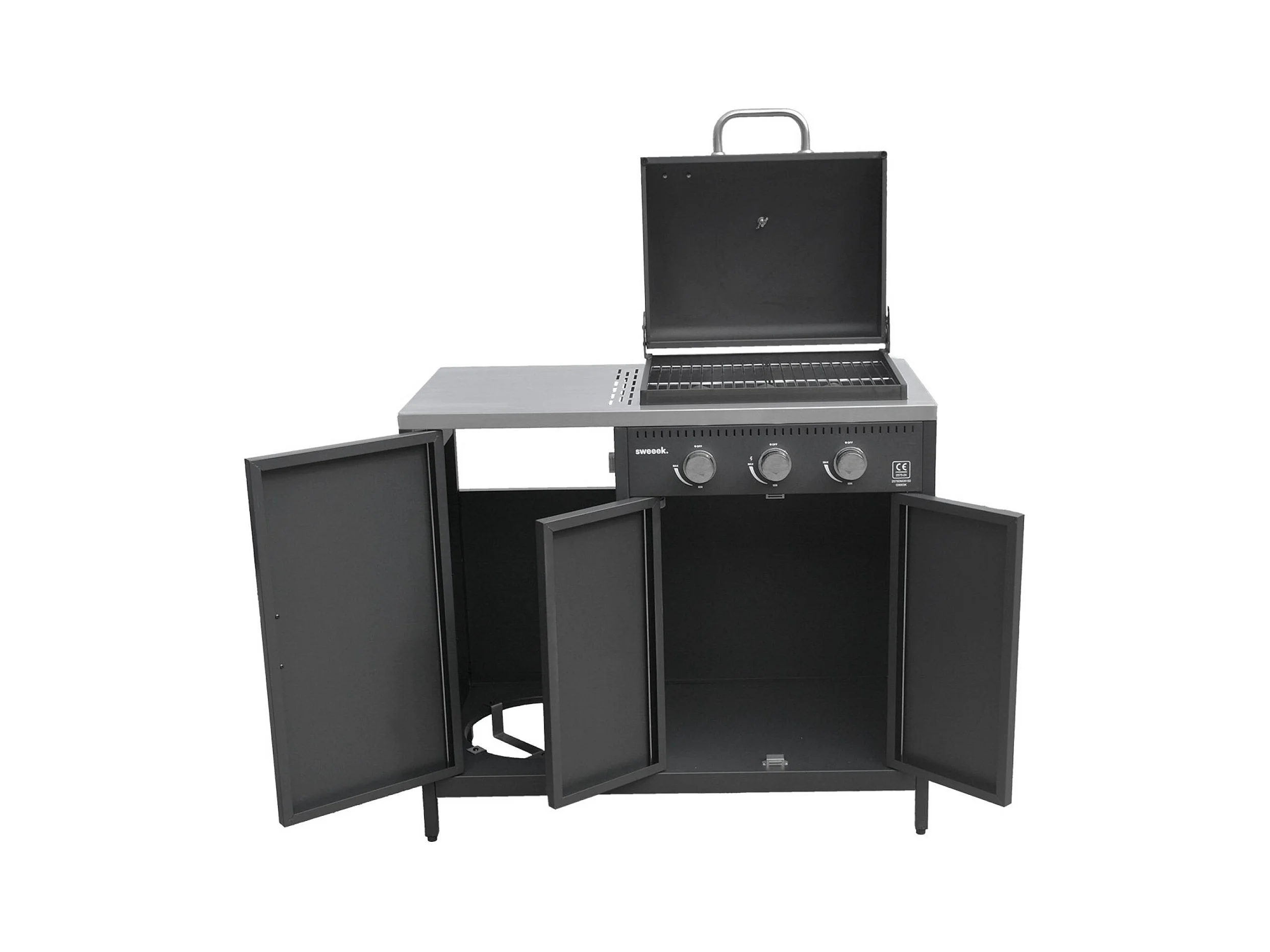 Barbecue gaz 3 brûleurs . noir. 3 portes et 2 espaces de rangement