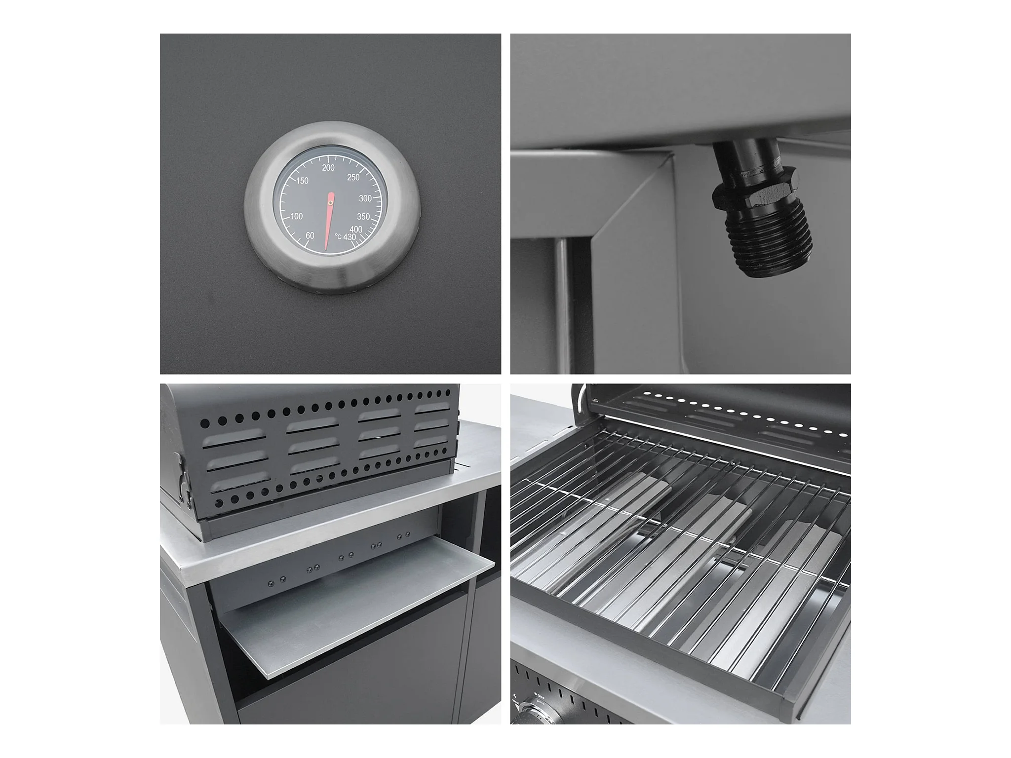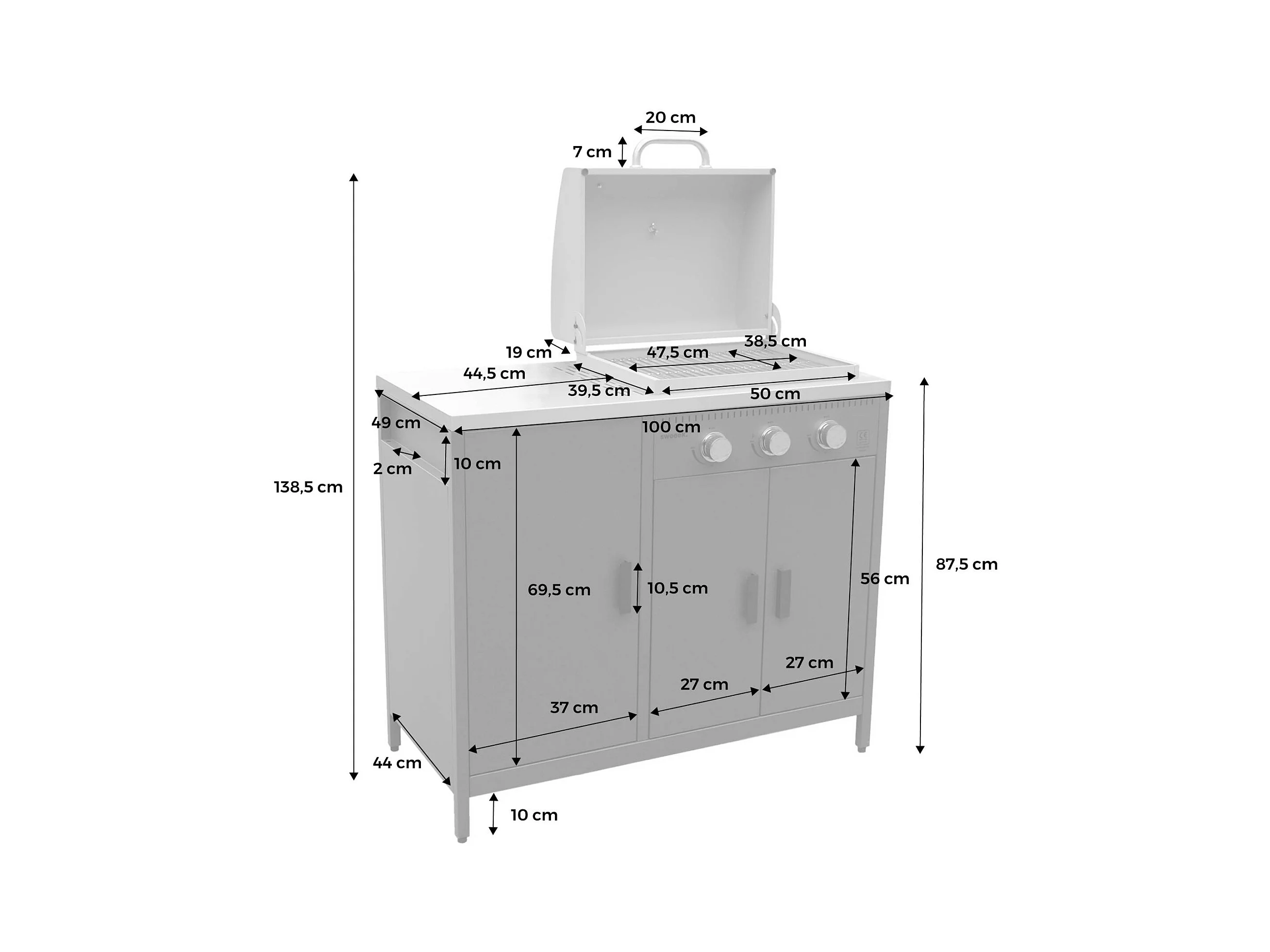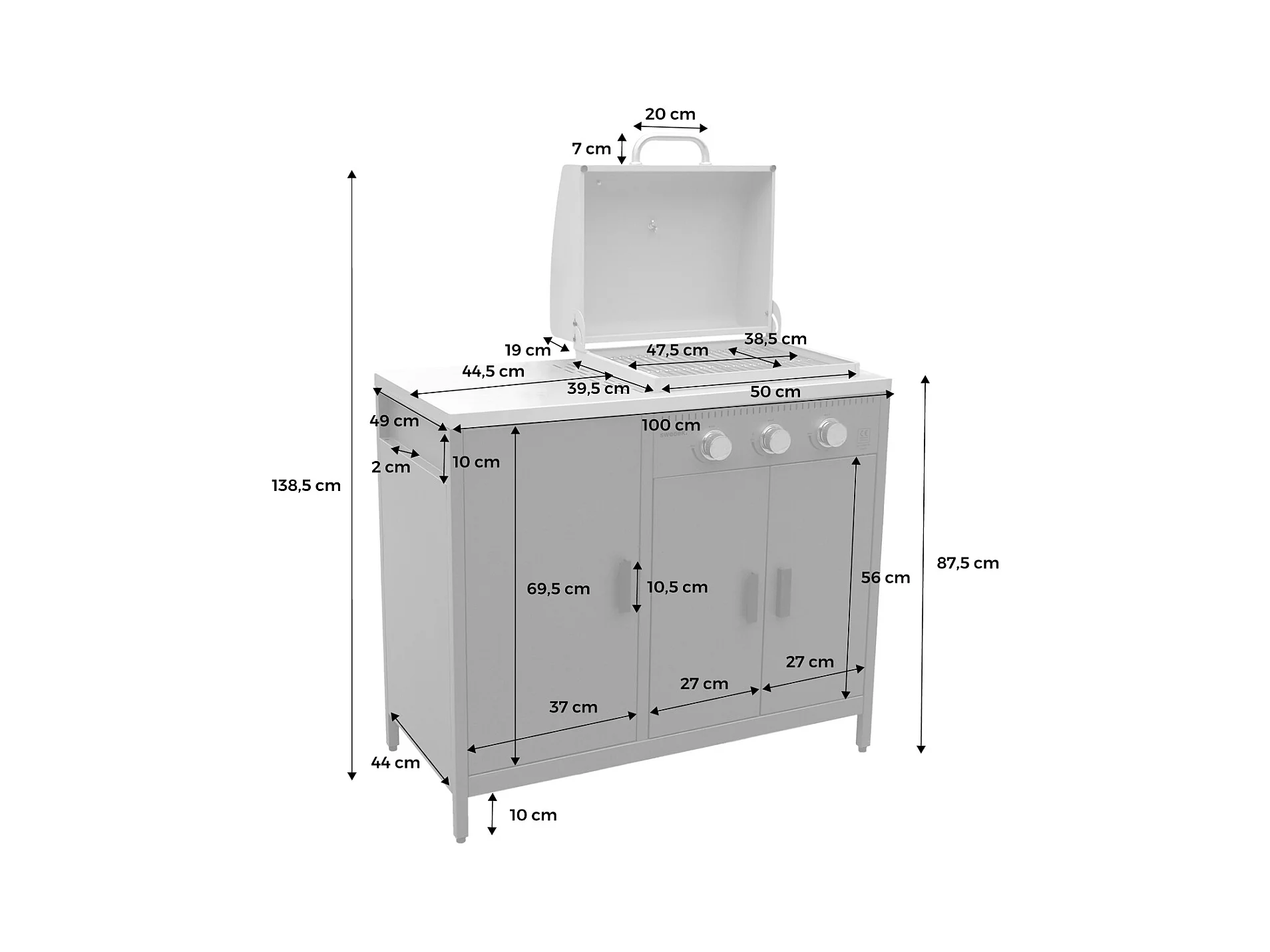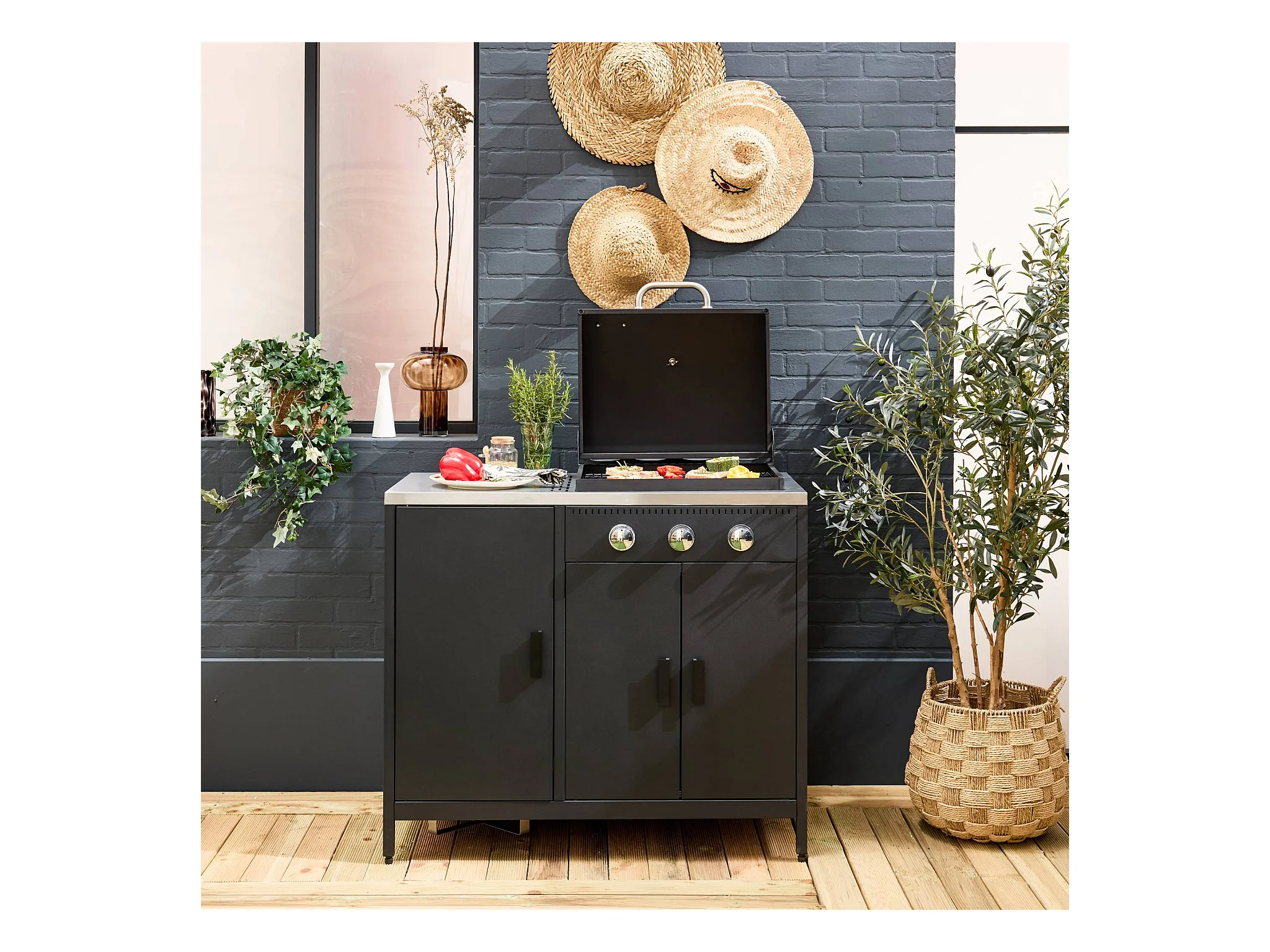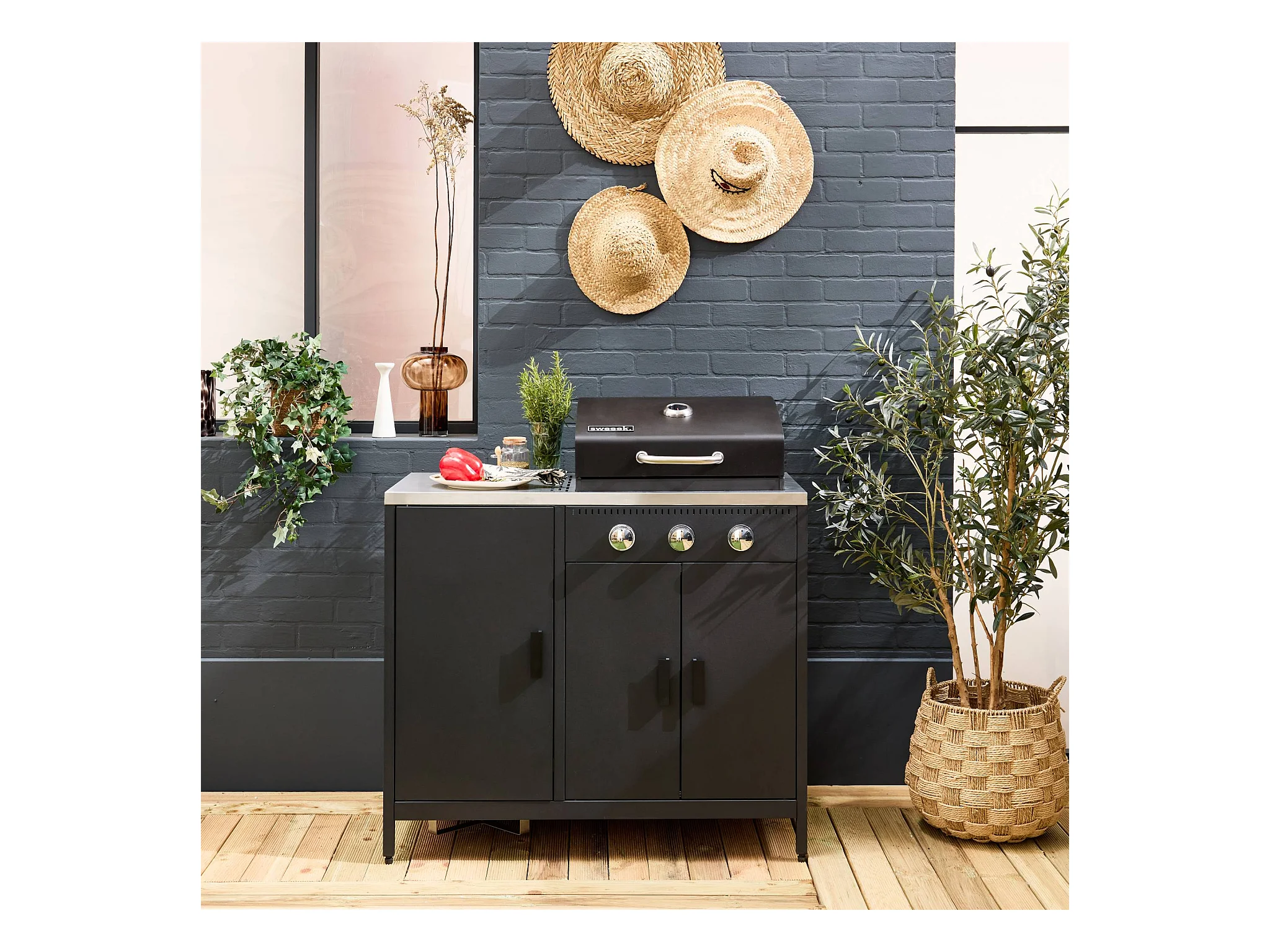 Barbecue gaz 3 brûleurs . noir. 3 portes et 2 espaces de rangement