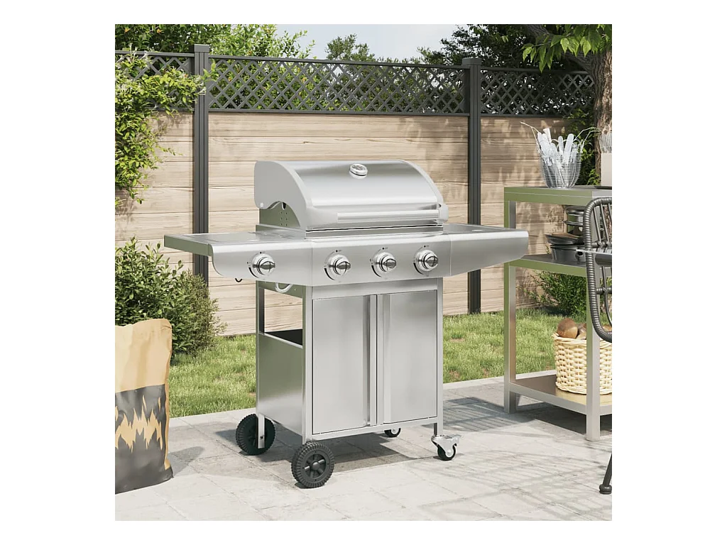 Barbecue gril à gaz avec 4 br?leurs argenté acier inoxydable