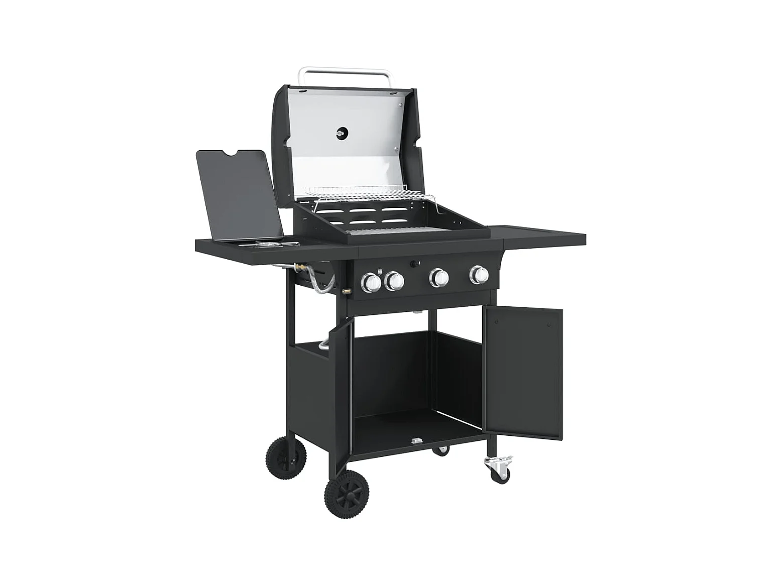 Barbecue gril à gaz avec 4 brûleurs noir acier enduit de poudre