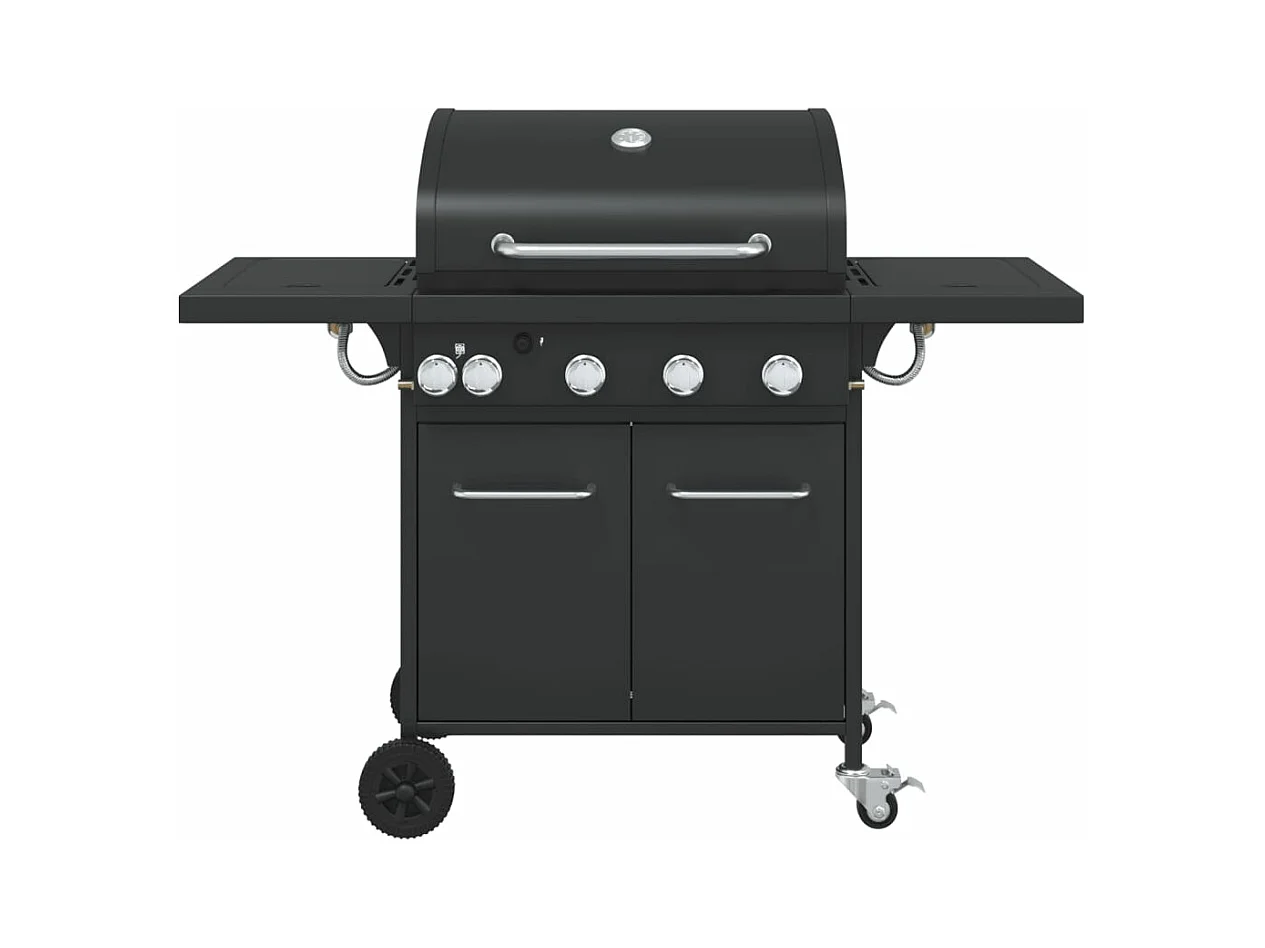 Barbecue gril à gaz avec 5 brûleurs noir acier enduit de poudre FR201852