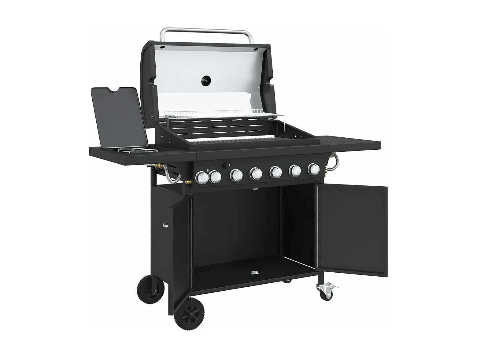 Barbecue gril à gaz avec 7 br?leurs noir acier enduit de poudre