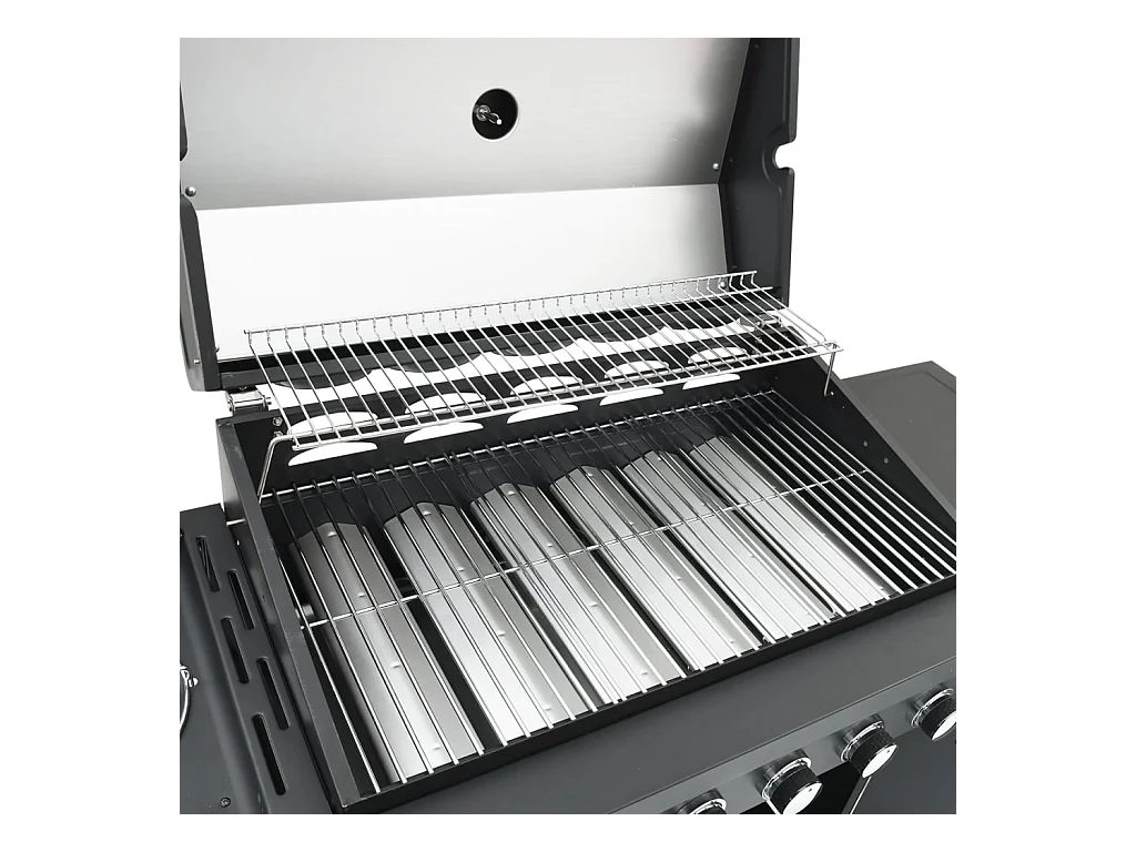 Barbecue gril à gaz avec 7 brûleurs noir acier enduit de poudre