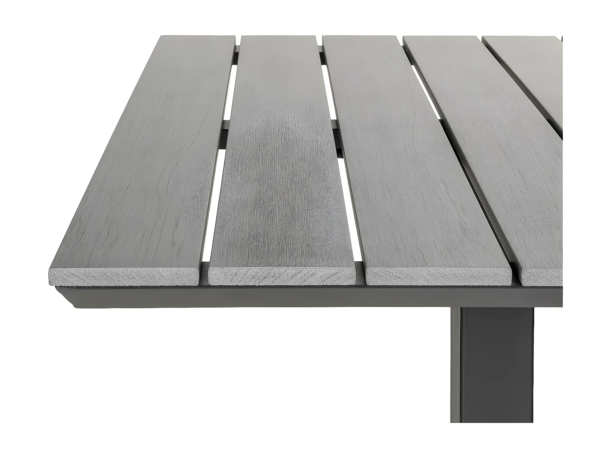 BARNAM - Table Carrée Lames Effet Bois Gris et Piétement Métal Noir