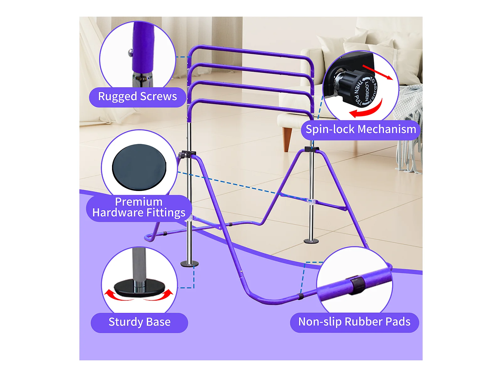 Barre de gymnastique extensible pour enfants, réglable en hauteur, acier, violet (145x100x130 cm)