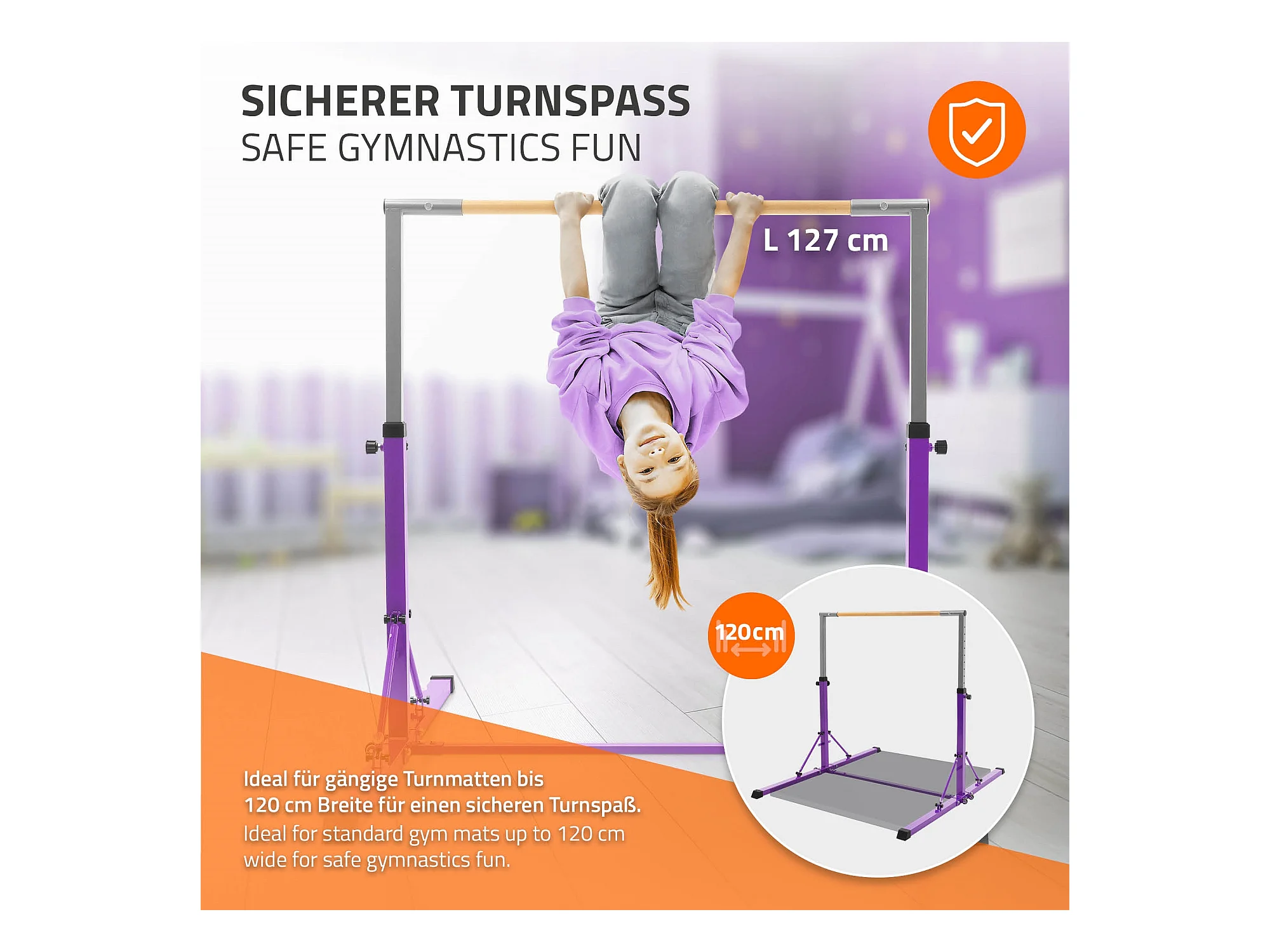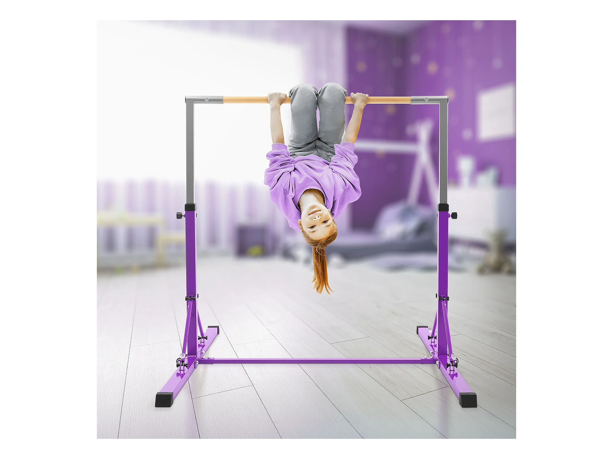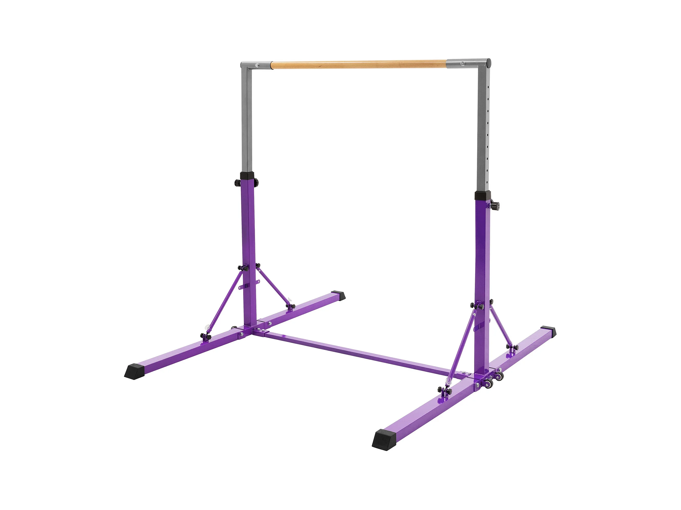 Barre de gymnastique pliable pour enfants lilas hauteur réglable 95.5-150cm structure en acier/bois appareil d'entraînement à la maison support stable