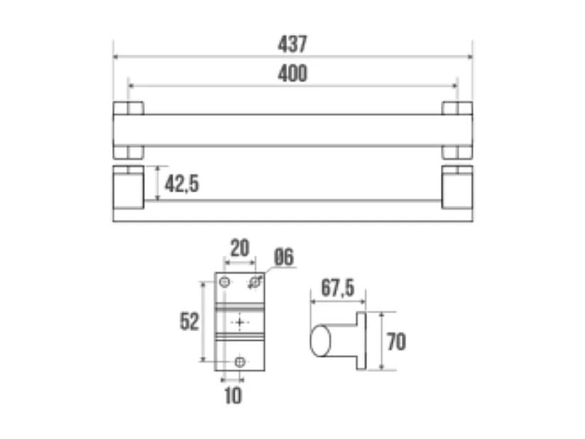 Barre de maintien droite PMR PELLET Design 40 cm aluminium anodisé brillant caches résine chromée
