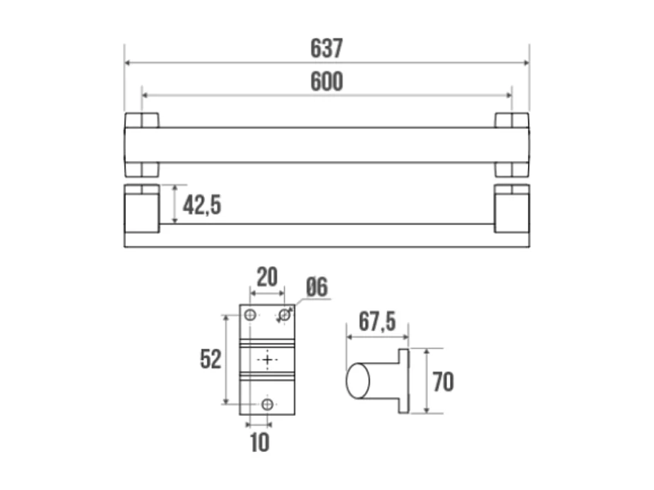 Barre de maintien droite PMR PELLET Design 60 cm aluminium anodisé brillant caches résine chromée