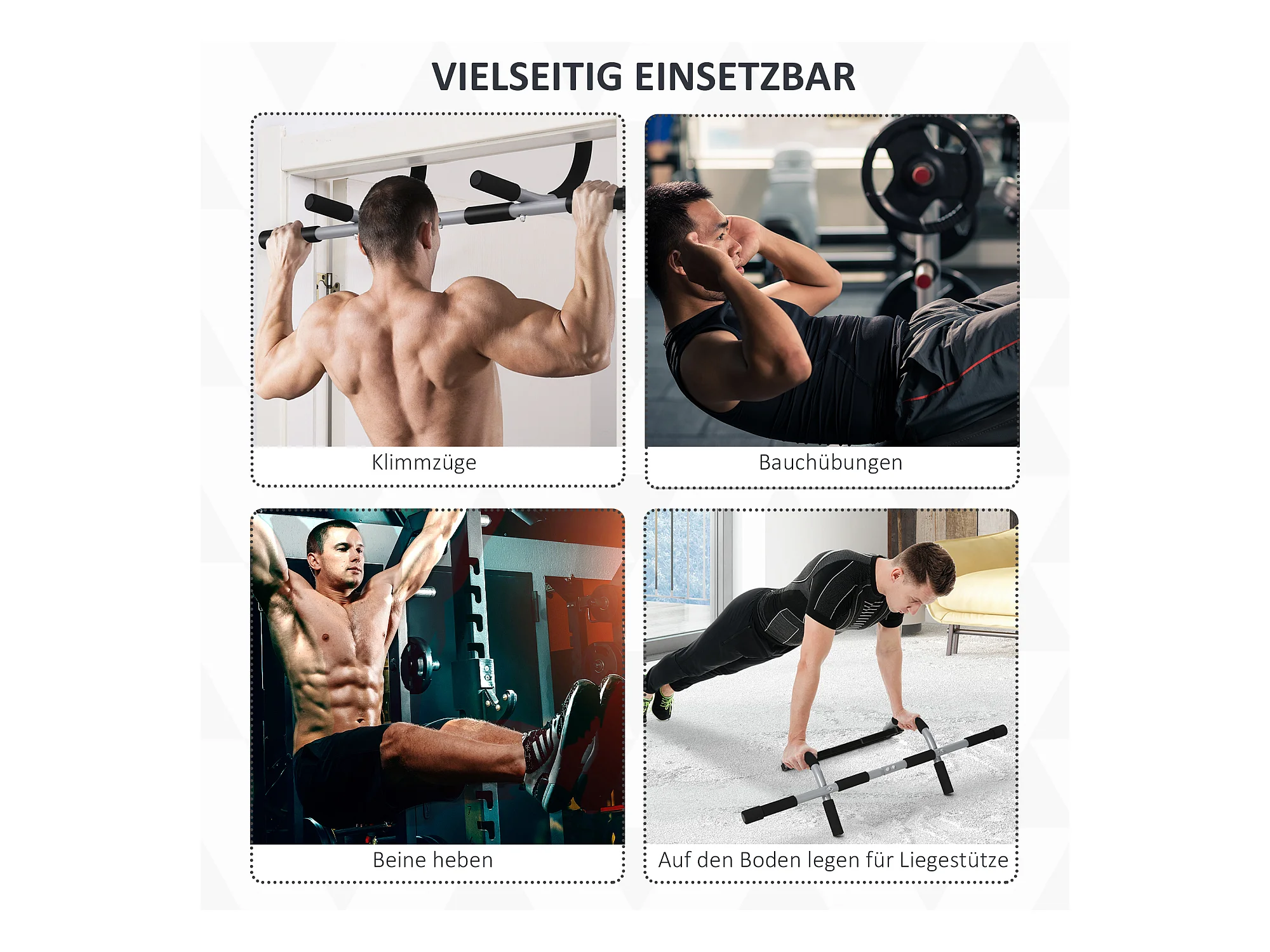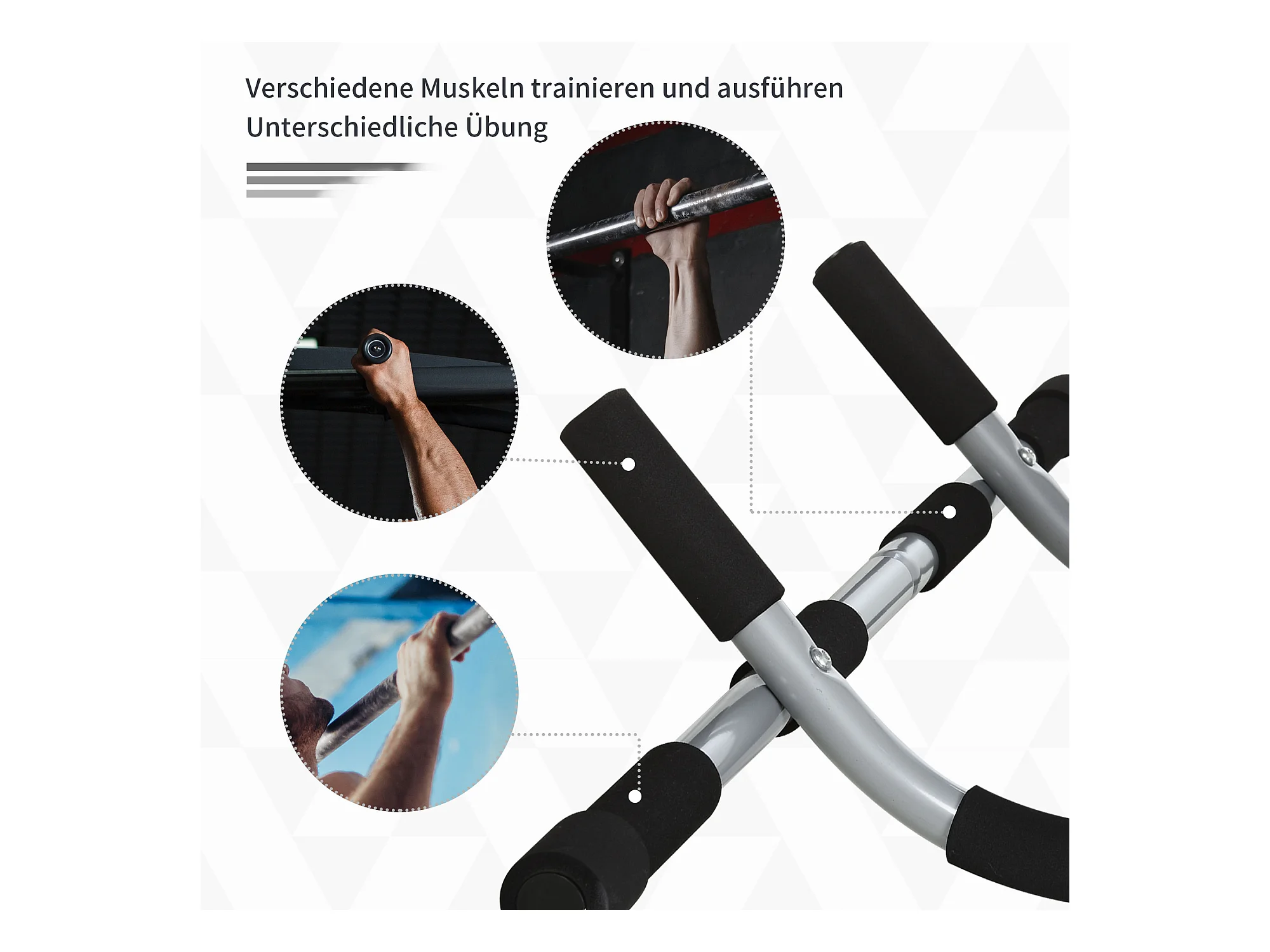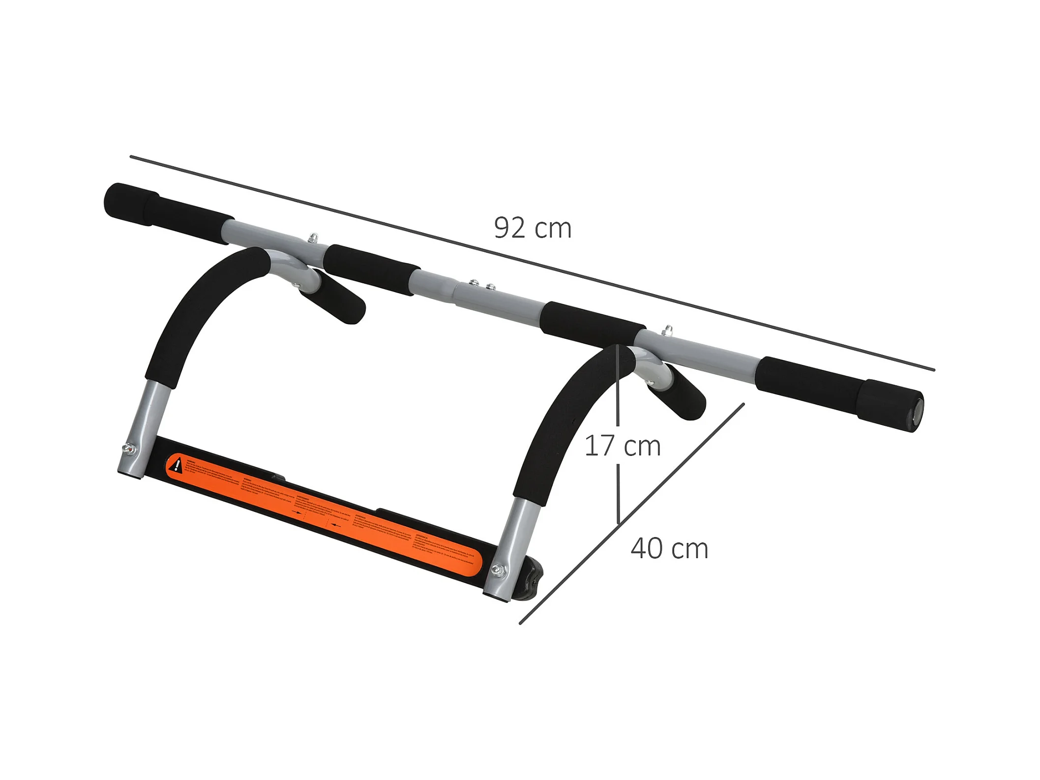 Barre de traction multifonction, support d'entraînement pour porte, acier avec poignées en mousse, noir et gris (92x40x17 cm)