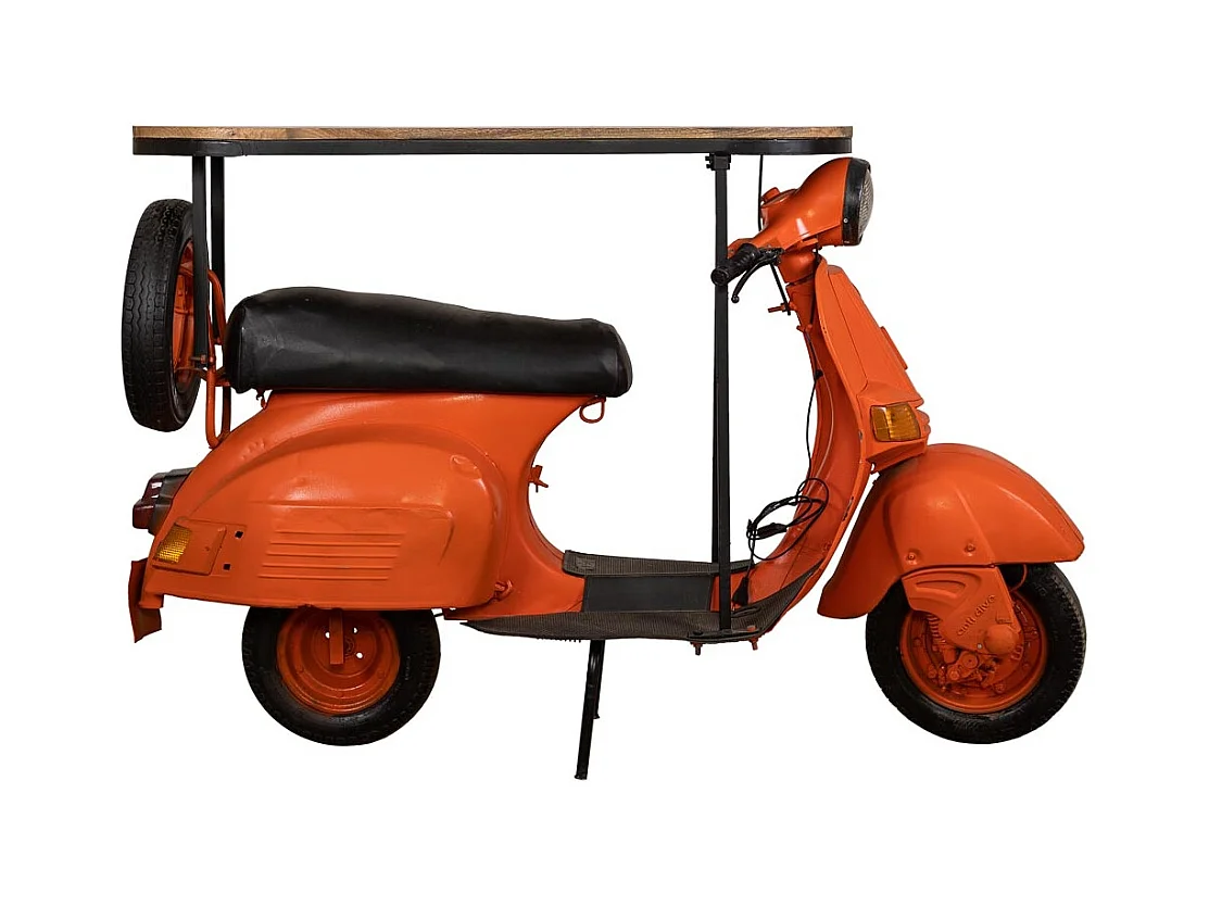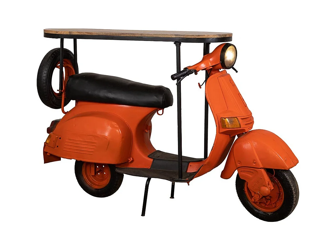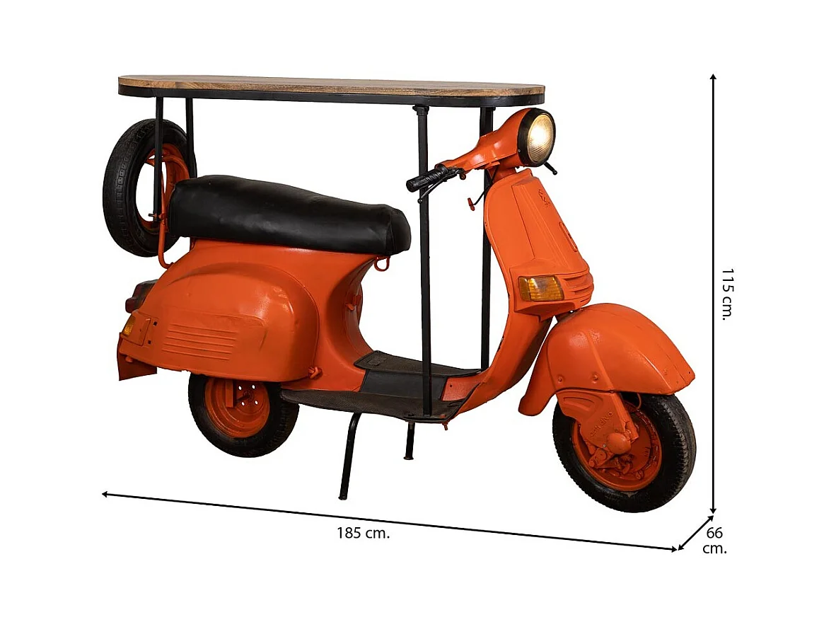 Barre porte-bouteilles moto vespa en métal et bois orange 185x66x115h